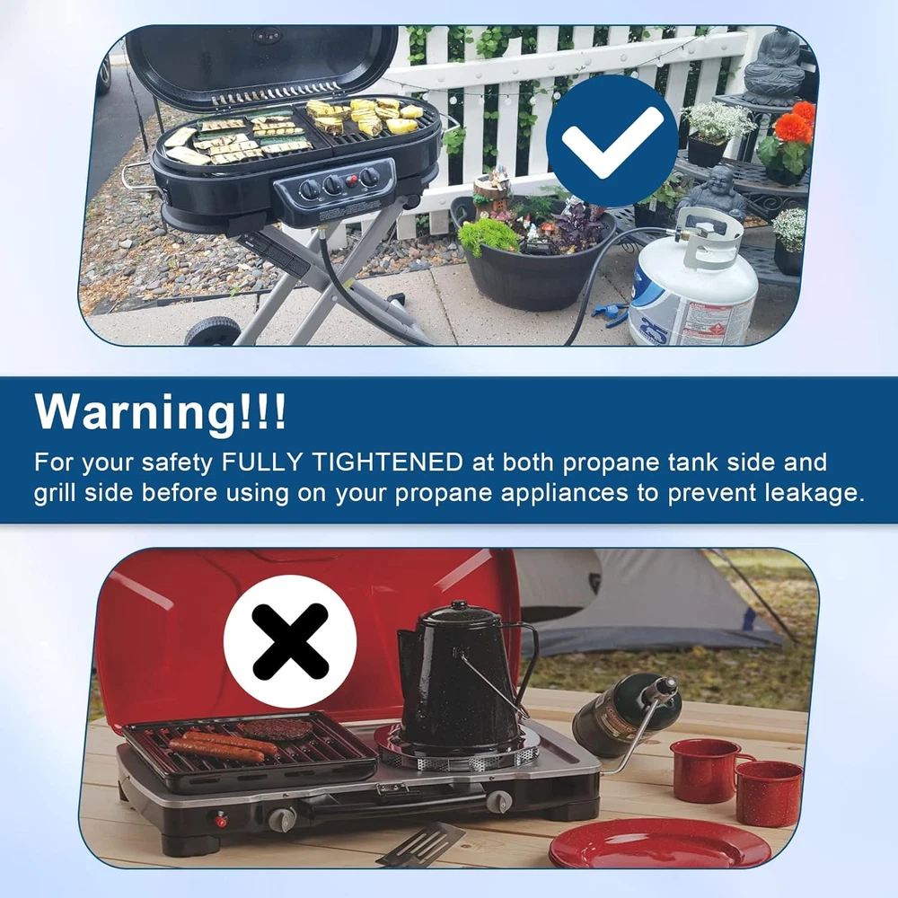 Store New Arrivals Add to Favorite View Feedback Contact Heater Hose12-Ft Propane Assembly Compatible with Mr.Heater/Big Buddy Adapter Description Item model number Propane Hose Assembly Color 12ft Material Brass, Rubber Country of Origin China Item Weight 1.55 pounds Item Length 12 Feet Product Dimensions 144"L x 1"W Propane Adapter Hose Compatibility: F273704 propane hose fit for Mr. Heater Mr Buddy series, 12-foot propane hose with adapter fittings assembly compatible with Mr.Heater MH9B Portable Buddy and MH18B Big Buddy,Blackstone griddle,Coleman camping stove and more. Propane hose adapter 1lb to 20lb",and compatible with more heater equipment and propane tanks Propane Tank Hose Adapter: Replacement for Mr Heater adapter hoses parts are widely used for 1 lb propane tanks to 5-20 lb propane tanks and equipment,also available for more types of propane tanks,ideal for lanterns, gas grills, heaters, cookers, camping stoves,and fire pit tables,portable grills,camping,tailgating,tabletop grills,heating or outdoor picnics and more propane equipment,and so on Easy to Install: POL connection attaches directly to propane tank without needing any tools. The end swivels of the hose are easily tightened by hand, simply hand-tighten the swivel ends to secure it, can be directly connected onto the RV’s low-pressure propane supply, make sure both ends are tightened for safe and reliable usage Safe and Reliable: ChangTa heater adapter hose is CSA certified as safe and reliable, provide a safe, gas-tight connection between the heater and the tank with no gas leakage to ensure the safety of users of the heater, no regulator or gas problems, and the airflow is kept stable and at an appropriate level Excellent Material: 12-ft propane stove hose extension is made of high-quality rubber, leak-proof, explosion-proof, wear-resistant, corrosion-resistant; Propane stove adapter hose connector sections crafted from solid brass, provides secure connection between appliance and tank, durability, and safe, leak-free operation Please Note: This is a non-OEM product. Any use of brand names or model designations for this product is made solely for demonstrating compatibility. We will resolve your hose questions as soon as possible and want to ensure that each customer has a great experience Product Description F273704 12Ft Propane Heater Adapter Hose Assembly, Compatible With Mr. Heater, Big Buddy Heater To Series, Coleman Camp Stove Series, Fit Indoor/Outdoor Propanetank- (Lp Cylinder Pol Connection) Specifications: Type: Portable Heater Hose Model: F273704 Package Includes: 1 x 10-Feet Propane Hose Assembly Inlet: P.O.L. Outlet: 1"-20 Male Throwaway Cylinder Thread Gas Type: Propane Hose Material: PVC + Nylon Sewing Thread + Rubber 100% Solid Brass: Premium materials can ensure your safety during a BBQ party High Quality: With our flexible hose, it is easy and convenient to move around Double Layers Structure: Our hose adapter is a key component of propane tanks, inner layer is responsible for bearing the pressure and resisting the corrosion of gas. Outler layer is used for anti-oxidation, anti-aging and anti-external damage, it can be used for a long time, and the hose is long enough to keep the propane tank at a safe distance Standard Fittings: Well constructed for tight seal, no worry about leakage Mounting Location: Floor, Desk/Tabletop, Cabinet & More propane equipment,and so on.etc Wide Compatibility: For use with Mr. Heater MH9B Portable Buddy and MH18B Big Buddy Safe and Reliable Appliances which are designed for 1 pound propane tanks to 5-20 pound propane tanks Safety of use ,provide a safe, gas-tight connection between the heater and the tank with no gas leakage to ensure the safety of users of the heater, no regulator or gas problems, and the airflow is kept stable and at an appropriate level Notice For safety, it is best to perform an air leakage test before use. (You can put soapy water on the joint to see if it will bubble) Make sure all fitting connections are FULLY TIGHT. Keep the hose away from HIGH TEMPERATURES while the propane valve is open. Check and make sure the hose is away from the OPEN FIRE or direct heat before installing it to your appliances Mr.Heater F273704 12ft Hose assembly connects appliances that are designed for disposable cylinders to a 20 lb cylinder with hand tighten swivels on both ends Propane adapter hose Compatible with Coleman portable grill, Coleman camping stove, Blackstone tabletop griddle, Mr. Heater buddy heater, Q grill Mr.Heater F273704 Propane extension hose, for 1 lb propane tanks to 5-20 lb propane tanks and equipment, for most, lanterns, gas grills, Heaters, gas generators, burners, smokers, cookers, camping stoves, fire pit tables, portable grills, camping, tailgating, tabletop grills, heating fire pit and all other or outdoor picnics & More propane equipment, and so on PLEASE NOTE Utilizing this 12-foot Propane Hose and Regulator Assembly, you can enjoy the small heaters for longer by connecting appliances which are designed for 1 pound propane tanks to 5-20 pound propane tanks Eliminate the Need for Fuel Filter: The hose can be used to connect to low pressure as well as high pressure tanks, and the specially designed materials eliminate the need for a fuel filter The end swivels are easily tightened by hand so take this with you on your next camping trip and stay warm Non-OEM products, Any use of any brand name or model designation for this product is made solely for demonstrating compatibility Any brand names or logos are the registered trademarks of their respective owners. Any use of any brand name or model designation for this product is made solely for purposes of demonstrating compatibility ABOUT US We offer the best prices around on high quality products. Our E-store includes media such as books, movies, music and games while offering electronics, toys, sporting apparel, clothing, tools, general home, garden items and more. SHIPPING We are always 