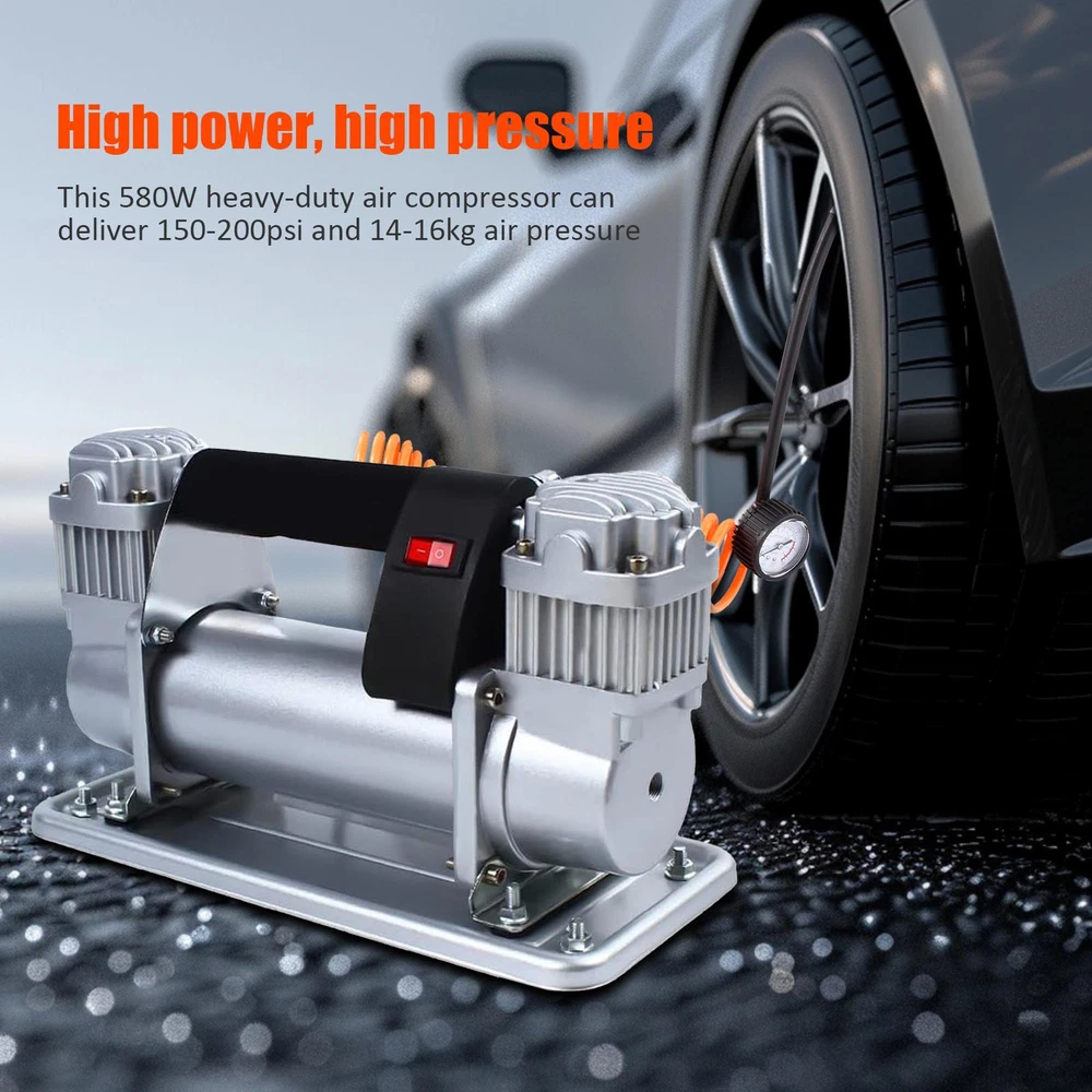 This air compressor is a game-changer! It pumps up tires super fast with its powerful motor, and the sturdy metal build keeps it reliable in any weather. Perfect for cars, bikes, or even boats—super portable and easy to use. No more struggling with slow pumps—this one gets the job done quickly!