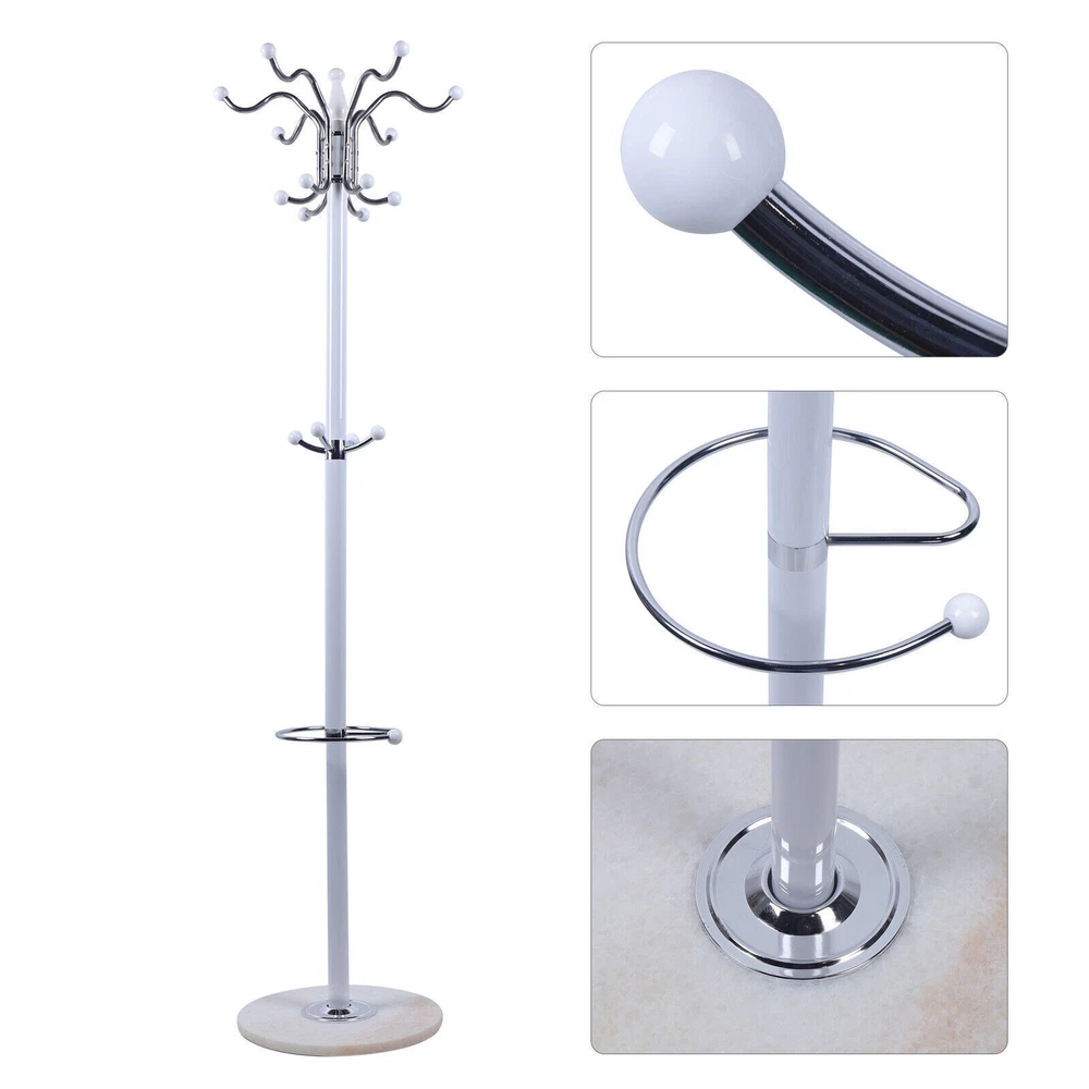 16-Hook Metal Coat Rack with Umbrella Holder & Hat Tree Stand - Made in USA