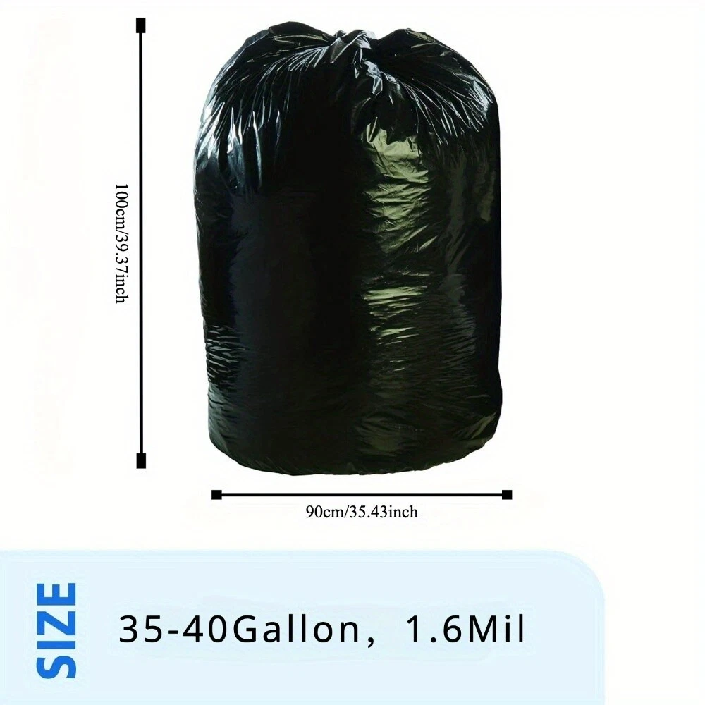 1. Spacious Capacity With a 45-gallon volume and dimensions of 35 inches by 39.4 inches, these trash bags can hold a significant amount of waste. Ideal for large clean-up projects, such as clearing leaves from a big yard or managing waste in a commercial establishment. 2. Heavy-Duty Durability The 1.9 MIL thickness provides exceptional strength. These bags can withstand sharp items like thorns and metal scraps without tearing, making them suitable for rough waste disposal tasks. 3. Versatile Application Perfect for lawn and leaf disposal, as well as commercial waste management. Use them in parks, offices, or any place that generates a substantial amount of waste. 4. Secure Containment The sturdy material and well-designed construction ensure that waste stays inside the bag. No more worries about leaks or spills, keeping your environment clean and hygienic. 5. Value Pack Comes in a set of 100, offering for money. You'll have an ample supply for multiple uses, reducing the need for frequent repurchasing