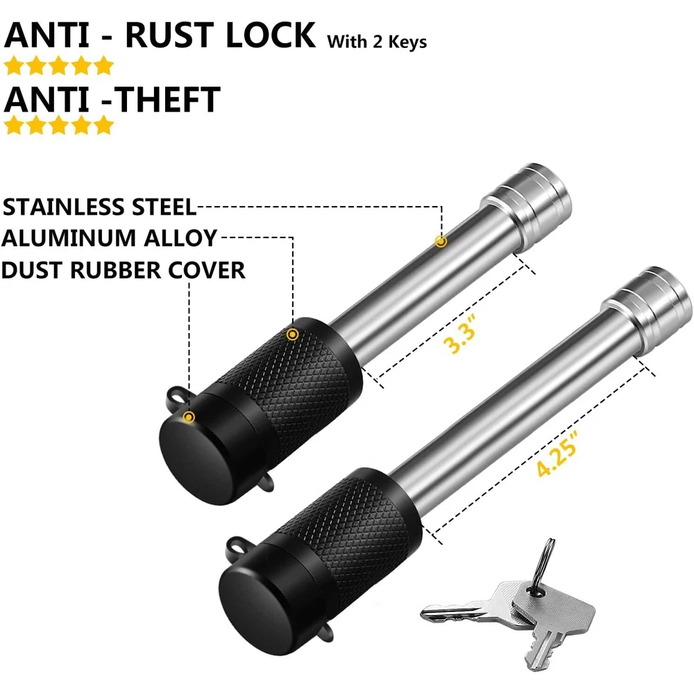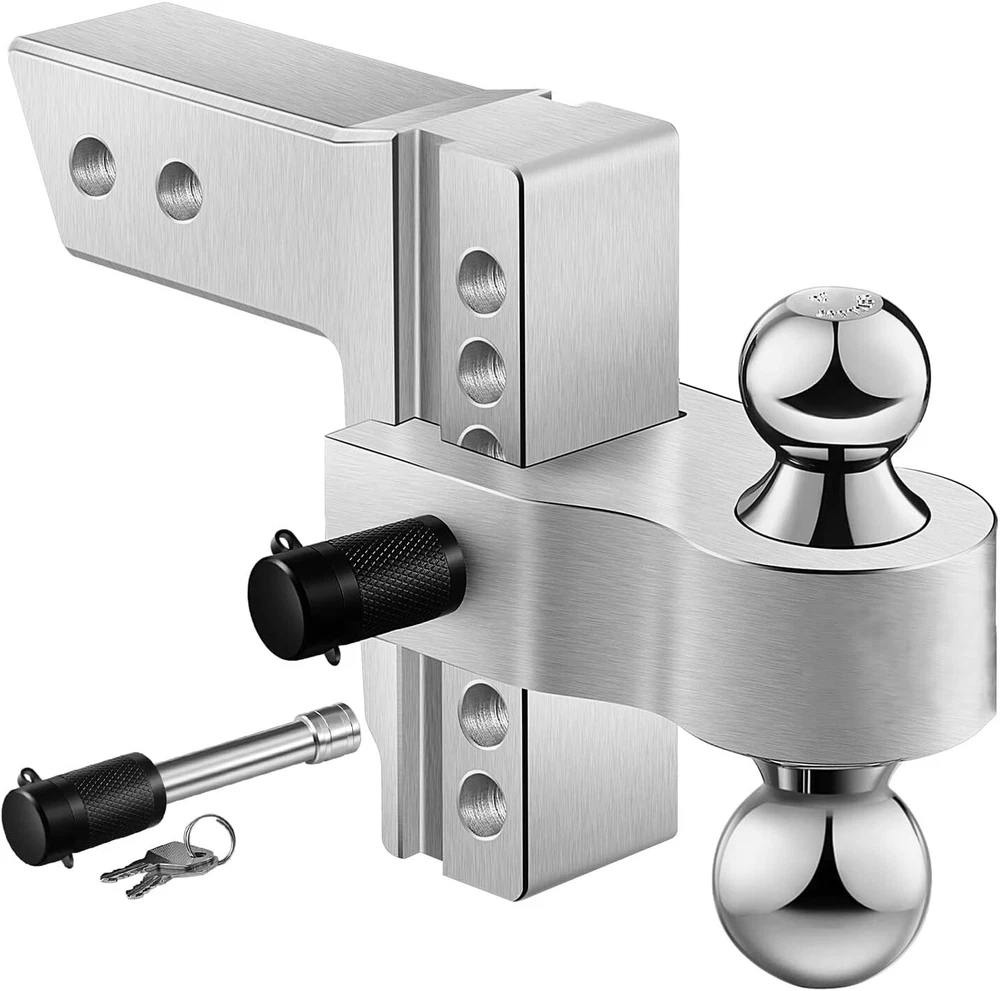 Item Description Material: Aluminum Ball Size: 2" and 2-5/16" Adjustable Height: 6" Drop Distance (Adjusts in 1" Increments) Loading capacity: 2" Ball-8,000 lbs; 2-5/16" Ball -18,500 lbs Pin Hole Diameter: 5/8" Compatible with: Vehicles with 2.5 " Hitch Mounts Package Includes:Adjustable Steel Tailer Shank, Hitch Ball ( 2" And 2-5/16"), 2 Anti-theft Pin Locks With 2 Keys