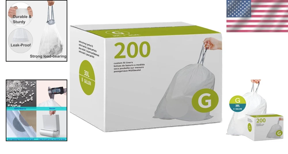 Heavy Duty 8 Gallon Drawstring Trash Bags - 200 Count | Code G Compatible ‹ › ‹ › ‹ › ‹ › ‹ › ‹ › ‹ › Heavy Duty 8 Gallon Drawstring Trash Bags - 200 Count Perfectly Designed for Your Needs [CODE G] Compatible with Code G trash cans, providing a seamless fit for 8 Gallon/30 Liter capacity without messy overhangs. 200 Count : A generous supply of white trash bags featuring a grey drawstring closure for effortless tying and transporting. HEAVY DUTY: 1.2 MIL THICK : These trash bags are tear-resistant and exceptionally strong, designed to handle all types of residential and commercial waste without ripping, tearing, or leaking. STRONG DRAWSTRING HANDLES : Sturdy handles ensure a secure grip for lifting, tying, and carrying, making cleanup a breeze. Wide Application : Ideal for various settings including kitchen, office, bedroom, bathroom, and even your car—versatile enough to store books, clothing, and holiday decorations. Features and Benefits: Efficient Disposal: Quick-dispense packaging allows you to grab bags hassle-free without the nuisance of tangled perforations. Robust Construction: Made from high-quality materials ensuring durability and resistance against punctures even when filled with sharp or heavy items. Organizational Flexibility: Perfect for large and small tasks alike, whether you're decluttering your home or managing waste at events. Elegantly Simple: White color with sleek grey drawstring enhances any space while offering uncompromised functionality. Why Choose Our Heavy Duty Trash Bags? No more worrying about weak, unreliable trash bags that fail when you need them most. Our Heavy Duty 8 Gallon Drawstring Trash Bags are equipped with a robust 1.2 mil thickness that stands up to the rigors of everyday waste, ensuring your cleanup is hassle-free and efficient. Available in a convenient 200 count pack, they are perfectly sized for Code G trash cans, making them an ideal choice for those who value both performance and practicality. Up your waste disposal game with our premium trash bags—order yours today! Shipping Free & Fast Shipping - We offer free shipping to most of the USA with a normal delivery time of 3-7 days. However, due to the current situation, additional delivery time (up to 3 weeks) may be required for some items. Alternative Carriers - We may use alternative carriers (e.g. USPS, FedEx, UPS, etc.) to ensure your package arrives safely and on time. Due to the use of multiple carriers, we are unable to provide a tracking number automatically. Handling Time - Orders are processed and shipped within 1-2 business days of receiving cleared payment. Shipping Restrictions - Shipping to Alaska, Hawaii, Puerto Rico, Guam, and other US territories may incur shipping charges or delivery restrictions. Please contact us before ordering, or your order can be refunded/cancelled. State Restrictions - There may be restrictions based on your state of purchase. For example, certain items may not be shipped to California due to state regulations. Contact for Tracking Updates - If you require tracking updates or have any concerns about the delivery of your order, please feel free to contact us, and we will be happy to assist you. Return Please see our eBay Return Policy. Thank you. Payment We accept all major credit cards, PayPal, and Apple Pay for your convenience. Your payment information is secure and encrypted to ensure a safe and seamless transaction. Please complete your payment within 3 days of purchase to avoid any delays in shipping. Feedback Your feedback is extremely important to us. We strive to provide the best products and customer service possible. If you are satisfied with your purchase, please take a moment to leave us a positive review. If you have any concerns or issues with your order, please contact us before leaving negative feedback. We are committed to resolving any problems and ensuring your satisfaction. Contact Us If you have any questions or concerns, please feel free to reach out to our customer support team. You can contact us through the eBay messaging system. We are available Monday to Friday, 9:00 am to 5:00 pm EST, and we will do our best to respond to your inquiry within 24 hours. Thank you for supporting our small family business! UPC: Not Set Unit Quantity: 200 Room: Bathroom,Bedroom,Entryway,Garage,Home Office/Study,Kitchen,Living Room,Sunroom,Utility/Laundry Room Material: Plastic Features: Heavy Duty,Drawstring,Tear Resistant,Quick-dispense Pack Suitable For: Food Waste,General Waste,Indoor,Outdoor Brand: Unbranded Item Height: 8 Gallon Trash Bags Item Length: 8 Gallon Trash Bags Item Width: 8 Gallon Trash Bags Type: Trash Bag Color: White Capacity: 8 gal Size: Large Number of Compartments: 1 Model: Not Set Item Weight: 9 lb MPN: Not Set Shape: Rectangle Style: Modern Pattern: Not Set Country/Region of Manufacture: Not Set Finish: Matte Unit Type: Not Set Personalize: Not Set
