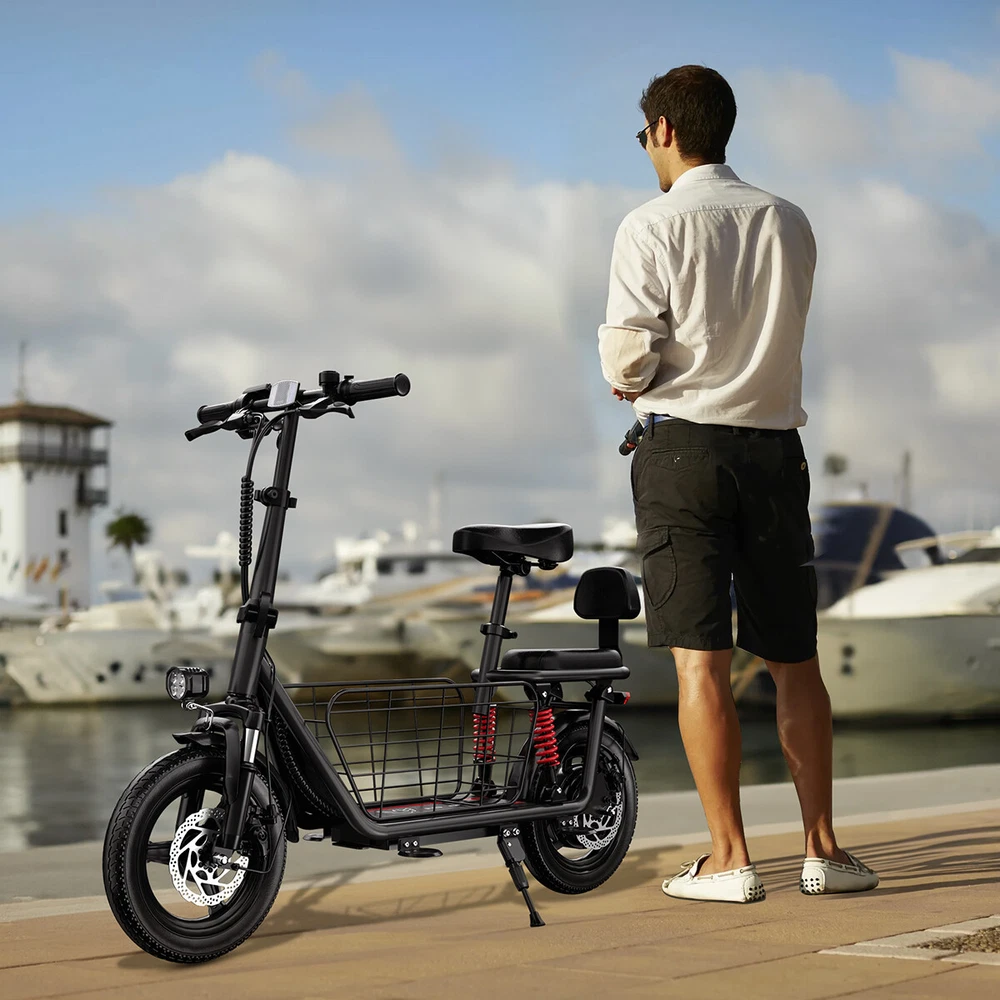 Heavy Duty Electric Scooter w/Seat & Carry Basket 25 Miles 850W Peak Motor 330lb Features: POWERFUL PERFORMANCE AND LONG-LASTING BATTERY: The electric scooter boasts an 850W peak brushless hub motor, enabling it to conquer slopes of up to 15° and achieve top speeds of 22 MPH. Equipped with a 48V 480WH battery, it charges in just 4-5 hours and offers a range of 25 miles, making it a perfect companion for daily commutes. ENHANCED SAFETY FEATURES: This scooter electric for adults features smooth dual disc brakes for a controlled stop, a responsive horn for alerting others, and bright front and rear lights to ensure visibility at night. Designed with safety in mind, it is also beginner-friendly, providing a secure and comfortable riding experience. COMFORT AND STABILITY DESIGN: The foldable electric scooter includes an 8.66” wide deck for ample foot space, dual suspension, large cushion saddle and 14-inch wide tires for a smooth ride that effectively absorb shocks when navigating obstacles. The 4 footrest, cushioned and adjustable seat adds to the comfort, allowing for extended periods of riding without discomfort. VERSATILE AND USER-FRIENDLY SCOOTER: Scooter electric equipped with 2 seats, can carry one child and one adult at the same time. With a maximum load capacity of 330 lbs and adjustable seat and handlebars, this e scooter accommodates a variety of body types. Its detachable cargo basket, foldable handle, and lightweight design make it easy to store in a trunk, making it ideal for commuting, shopping trips, and leisure outings. MULTI-FUNCTIONAL LCD DISPLAY: This electric scooter with seat is equipped with LCD display that displays the battery power, real-time speed, total/single mileage, battery voltage, 3 gear speed (mode 1: 9.3mph/ mode 2: 15.5mph/ mode 3: 20mph), provide more riding experience. (Note: The handlebar can be adjusted 360 degrees, but for a clearer view of the dashboard, we recommend adjusting the dashboard angle upwards) EASY TO SET UP AND RELIABLE SUPPORT: Certified by UL 2272, the 2 wheel electric scooter arrives 90% assembled, complete with an instruction manual and all necessary tools for easy setup. Should you face any issues like motor failure, charging problems, or missing parts, feel free to reach out to us. 💯The item is UL 2849 certified: https://productiq.ulprospector.com/en Specification: Type:Electric Bike Tire Size: 14" Front & Rear Peak Motor: 850W Motor Power: 500W Max Range: 25 Miles Limited Speed: 20 MPH Max Speed: 22 MPH Suspension Type: Dual Screen: LCD Display Brakes: Front & Rear Discs Speed Mode: 3 Gear Weight Limit: 330 Pounds Dimensions: 32.68"L x 51.18"W x 41.34"H Package Include: 1 x Folding Electric Bike Shipping Payment Return & Refund policy Feedback Customer Support - Contact Shipping FREE SAME BUSINESS DAY MONDAY- FRIDAY SHIPPING FROM USA. All orders and payments received before 4PM EST (1PM PST) will be shipped the same business day. All other orders within 1 business day. No shipping on Weekends or US Public Holidays. No responsibility for any custom duty Shipping information will be updated when available. Payment We accept payment via PayPal. Use PayPal at checkout to pay with credit or debit. Immediate payment is required. Shipping will be arranged within 1 business day once payment is cleared. Return & Refund policy 1.We stand behind our items and offer 60 days warranty. All items are in new and working condition unless specified otherwise elsewhere in the description. 2.All Returns - defective or otherwise - MUST BE PREAUTHORIZED to guarantee refund or exchange. Please contact us to get an authorization and return address. 3.Buyer agrees to pay for the cost of re-shipment for undeliverable or wrong addresses. 4.Buyer is responsible for Return Postage as well as a 20% restocking fee if return/replacement is not a result of our mistake such as wrong item. 5.Replacement or Refund will be made upon receipt of the returned item. Please include tracking number so we can process ASAP. If you do not wish to wait for a replacement, please repurchase the item. 6.ALL REFUNDS will be processed via PayPal. Please double check via PayPal history and transaction for confirmation. PayPal will send it back to whatever you used to pay within 3-5 days. Feedback We strive to provide the best products and services. If anything about your transaction did not meet expectations, please CONTACT US and give us the opportunity to make things right. We are always here to help. Customer Support - Contact Please do not hesitate to CONTACT US. You can message 24/7 on eBay for all questions and inquiries. We will get back to you within 1-2 business days at the latest.