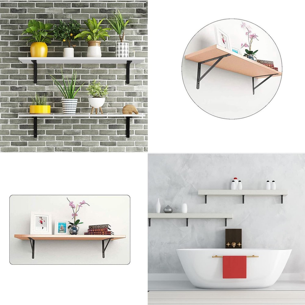 【8 Inches Shelf Brackets】: 4 Pack-7.8 x 4.7 inch shelf brackets,including Mounting Hardware.These brackets are designed to support shelves from 8 inches to 10 inches deep. 【Durable and High Quality】:Our shelf bracktets are made from premium steel, characterized by good impact resistance and no paint off. Widely used in a variety of rooms in a home, including the garage, kitchen, laundry room, backyard, and more. 【Rust-proof Coating】 Sturdy steel material with a black -coated finish is durable, chip- and corrosion-resistant. The smooth and rounded surface makes it easy to maintain. 【Easy to install】: The shelf brackets are easy to install, Each arm has 2 holes for screw intallation, you can use mounting hardware we provide to install it. 【Quality Services】:We have high efficiency after-sales service. If you have any questions in the process of using, please feel free to us. Our team will help you solve the issues ASAP