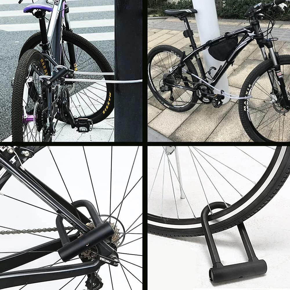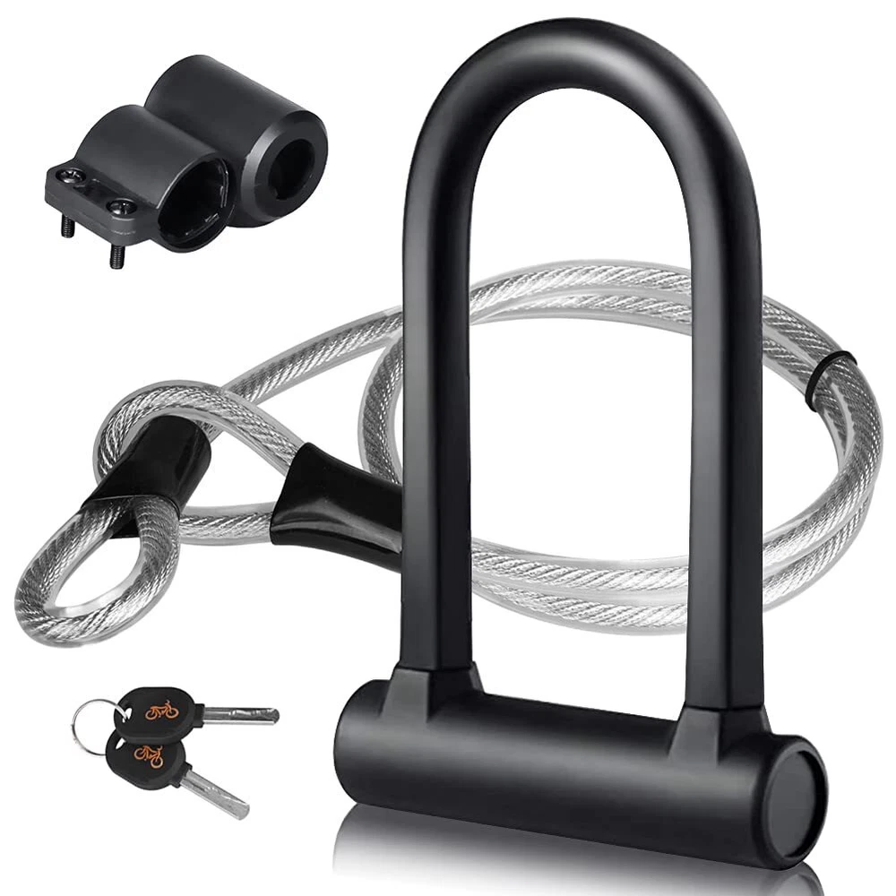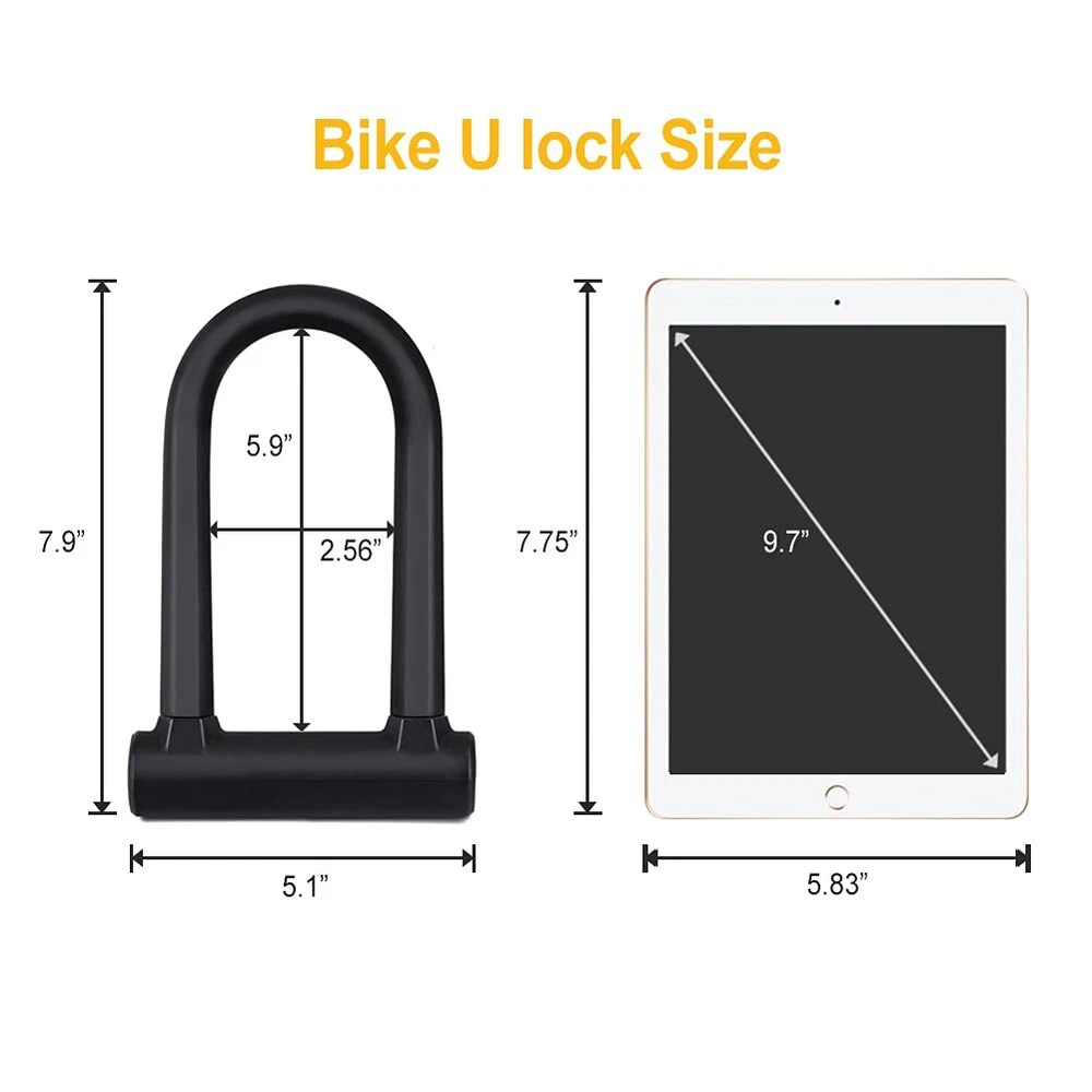 【Double-opening Head】Our heavy duty bicycle u lock is a double-opening head, The thief needs to break the bike locks on both sides at the same time to open it, which is safer than a single-opening head ulock. The lock cylinder of the bicycle is made of C-grade pure copper blades and has a precise structure to prevent various technologies from opening. In addition, the bike u lock is equipped with 2 rust-proof copper keys with a complex snake-shaped slot, which is safer to use. 【Sturdy and Durable】This bicycle lock is made of 16mm/0.63 inch (including 0.1 inches friendly silicone sleeve) hardened high-performance alloy steel, which can resist cutting and lever attacks. Our bike d lock will provide more security for your bike. 【Convenient to Lock】The bike u-lock heavy-duty comes with 4 feet/0.48in steel cable which is coated with PVC covering to provide a greater locking method to protect your bike, suitable for bicycles, motorcycles, electric bike, scooters. 【Portable Size】The size of the u lock for bicycle is 7.9 in * 5.1 in, which is the same size of a 9.7in tablet and is convenient to carry. In addition, come with a mounting bracket that is suitable for all-round tripods with a diameter ≤ of 1.18in (30mm). 【Package Includes】You will get 1*bike ulock, 1*4ft flex cable, 1*mounting bracket and 2*keys, it is very easy to install according to our instructions. If you have any questions, please contact us and we will get back within 24 hours.