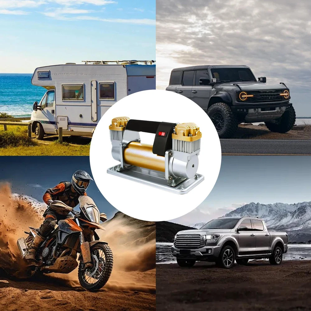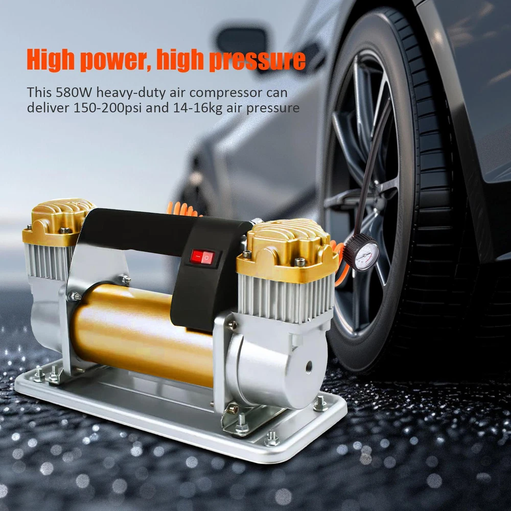 Heavy Duty Double Cylinder 12V Car Air Compressor Tyre Auto Tire Inflator Pump