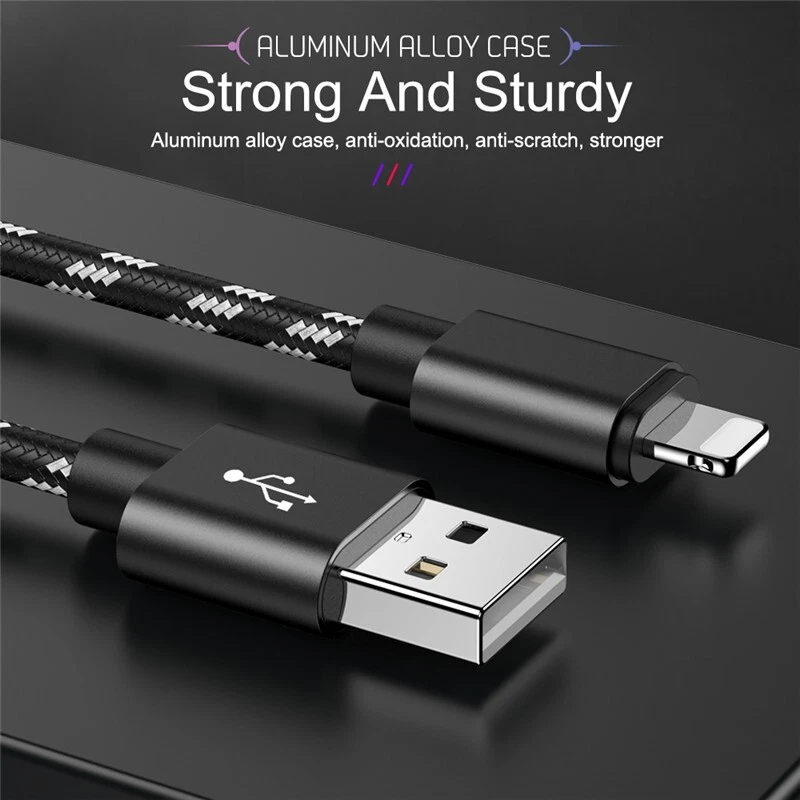 Compatible Brand:For AppleType:Cable & CordDesign/Finish:MetallicBrand:UnbrandedNumber of Ports:1Features:Braided, Fast Charge, Heavy DutyMPN:Does not applyItems Included:Charging & Data Sync Cable, Charging Cable, Data Sync CableCompatible Model:For Apple iPhone 11 Pro Max, For Apple iPhone 12, For Apple iPhone 12 Pro, For Apple iPhone 12 Pro Max, For Apple iPhone 13, For Apple iPhone 13 mini, For Apple iPhone 13 Pro, For Apple iPhone 13 Pro Max, For Apple iPhone 14, For Apple iPhone 14 Plus, For Apple iPhone 14 Pro, For Apple iPhone 14 Pro Max, For Apple iPhone 7, For Apple iPhone 7 Plus, For Apple iPhone 8, For Apple iPhone 8 Plus, For Apple iPhone X, For Apple iPhone XR, For Apple iPhone XS, For Apple iPhone XS MaxMaterial:NylonConnectivity:8 Pin, iOS