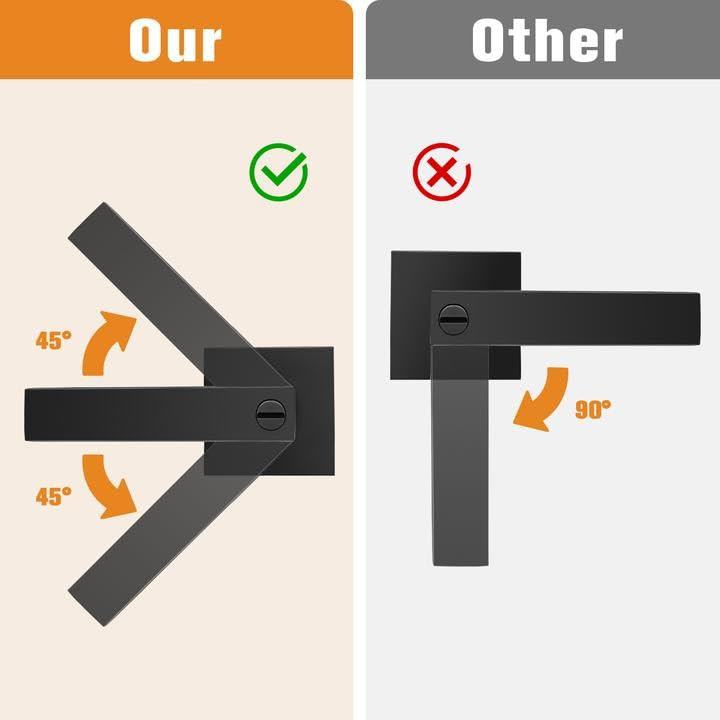 【Improve Your Home】: These square door lock meant to create an elegant effect to give your home the perfect finishing touch. Upgrade handle with provides a comfortable grip but a decorations to be used to enhance the beauty of your home. In contrast to other metal door handles, these handles provide a comfortable touch, which more suitable for colder or wetter conditions 【Upgrade Version】: Compared with other door locks, this privacy door handle help you to open and close your doors with less effort and freed your hands for other tasks. Upgraded internal structure not only strengthens the stability, but also prolongs the service life of the door handles 【Keyless Privacy Feature】: Privacy door Lever without keys could be locked and opened by a thumb-turn button from inside and a coin or slotted screwdriver could be a emergency tool to open and lock it from outside. This privacy door lever is best used for the room of privacy function needs, like bedroom, bathroom, guest room or office meeting room, where the easy locking & opening needs from inside is needed 【Easy to Install】: This interior privacy door Knobs come with all accessories to help you complete installation and upgrade existing interior in less time with only a screwdriver and no need for professional door fitters. It fits both right and left handed doors, which help you to make a simple installation without reversible the hand levers 【Adjustable Latch】: This privacy door locks comes with an adjustable latch 2-3/8" or 2-3/4"(60mm or 70mm) to fit all standard doors from 1-3/8" to 1-3/4" (35mm-45mm) thick. Lever Length: 4.88" (124mm), Rosette Diameter: 2.56" (65mm). The latch plate is square, and can't be removable