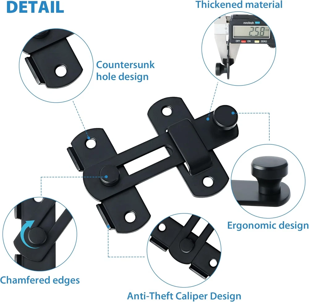The Alise Heavy Duty Flip Latch Gate Lock is expertly crafted from high-quality SUS304 stainless steel, ensuring exceptional strength and durability. This robust design makes it resistant to rust and oxidation, providing a long service life that is ideal for various applications. Whether securing a barn door, sliding door, or any other entryway, this latch lock offers reliable protection against intruders, making it a perfect choice for both residential and commercial use. Featuring a sleek matte black finish achieved through advanced high-temperature spraying technology, the Alise gate latch not only enhances the aesthetic appeal of your doors but also resists fading and wear. Its compact dimensions (3.95"L x 1"W x 2.76"H) and user-friendly design ensure that it can be easily integrated into any setting, including French doors, windows, and cupboards. Installation is a breeze, as the necessary hardware is included, allowing you to secure your space in just a few minutes. Constructed from durable SUS304 stainless steel for maximum strength and longevity. Matte black finish provides a stylish look while resisting oxidation and fading. Thicker solid metal design (2.5-mm) offers enhanced security and protection. Versatile use for various door types, including barn doors, sliding doors, and bathroom doors. Simple installation process with all necessary hardware included, making it user-friendly.