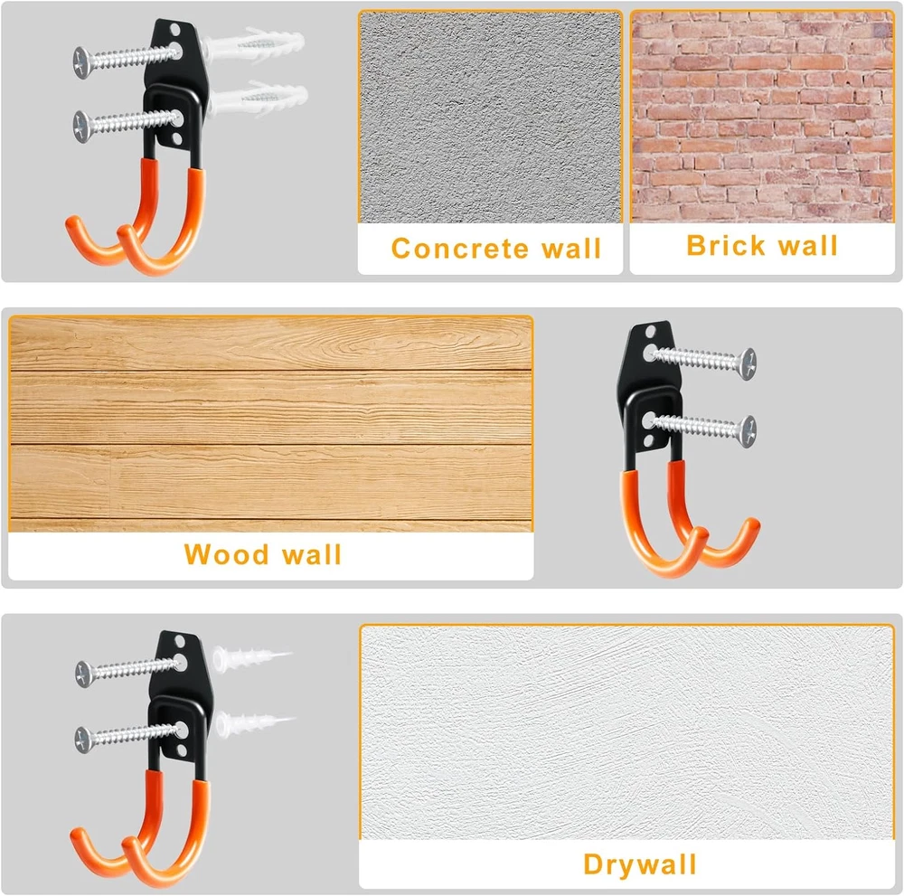 Heavy Duty Garage Hooks For Hanging 2 Pack Metal Garage Organization Hooks New POWERFUL WEIGHT CAPACITY - Our Heavy Duty garage storage hooks are an essential item for anyone looking to maximize their storage space. With a weight capacity that's second to none, you'll be able to hang everything from bikes and ladders to shovels and strollers without worrying about them falling or bending the hooks. These garage hooks heavy duty are perfect for creating a garage storage system and are great garage hangers for wall mount hooks PREMIUM QUALITY MATERIAL - Made of high-strength carbon steel and coated with a rust-resistant finish, our garage hooks heavy duty are built to last. They'll withstand the test of time and keep your garage or garden looking neat and organized for years to come. These storage hooks for garage wall are heavy duty garage hooks that you can rely on. WIDE RANGE OF APPLICATIONS - One of the best things about our heavy duty wall hooks is their versatility. Whether you need to hang a bike, ladder, or gardening tool, these garage wall hooks have got you covered. They're perfect for anyone who wants to keep their space tidy and clutter-free. These heavy duty wall hooks are also great ladder hooks for those who need to store their ladders. EASY INSTALLATION PROCESS - With our garage storage hangers, installation is a breeze. For wooden walls, you can simply screw the hooks in place. For brick or concrete walls, you'll need to use the included wall anchors for added support. Either way, you'll have your hooks up and ready to use in no time. These garage hooks for hanging are perfect for any DIY garage organization project. Product Description Item model number SJH2 Style Utilitarian Country of Origin China Theme Garage Storage and Organization Batteries Included? No Batteries Required? No Finish Powder Coated Material Carbon Steel Number of Hooks 2 Finish Type Powder Coated Included Components Heavy Duty Garage Hooks, wal anchors, screws Item dimensions L x W x H 5.7 x 3.2 x 2 inches Item Weight 10.2 ounces Surface Recommendation Wooden, brick, concrete, plasterboard walls Special Features Heavy Duty Special Feature Heavy Duty Mounting Type Wall Mount Color Orange Recommended Uses For Product Garage Product Dimensions 5.7 x 3.2 x 2 inches Size 2.5 Inch Shipping Fast shipping is very important for us. Our standard US shipping service is FREE. Your order will be shipped within 2-3 business days upon full payment received. Your order will be delivered within 2-3 business days after the handling time. We only ship to the confirmed PayPal address. We reserve the right to cancel any order for any reason at any time. We are not responsible for undeliverable addresses. Returns and payment We offer a 30 days return policy from checkout winning date. We allow only PayPal as payment method FeedBack Your feedback very important to us, after you get your package and you are satisfied with our service please leave us positive feedback If you have any problem with your order / any questions please before leave any type of feedback For any questions, using eBay contact system Please visit our eBay store to check out other items for sale! Thank you for shopping at our store.