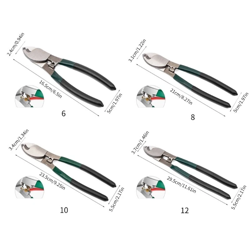 Features: Brand new and high quality Strong cable shears: Chromium vanadium steel forging/cutting sharp/heat treatments Cable scissors with large opening: The opening is 3.5cm, and common cable can be easily sheared. Multi-functional cable shears: Buy with stripping/shearing/line pressing holes and three with the top. Small mouth stripping function: Sharp and easy to cut and strip lines quickly and cleanly. Wide-mouth wire cutting function: Cutting sharp edges, high-frequency quenching and cable cutting. Design of crimping port: Crimping terminal is convenient and quick, and chromium vanadium steel pliers head has high hardness, high toughness, wear resistance and durability. Plastic-coated handle: Firm and non-shedding, soft and skin-friendly Specifications: Material:Chromium vanadium steel Type:6inch/8inch/10inch/12inch Package Includes: 1x Cable Cutters note: 1.Please allow 1-2cm errors due to manual measurement, make sure that you do not mind before you order. 2.Due to the difference between different monitors, the picture may not reflect the actual color of the item.