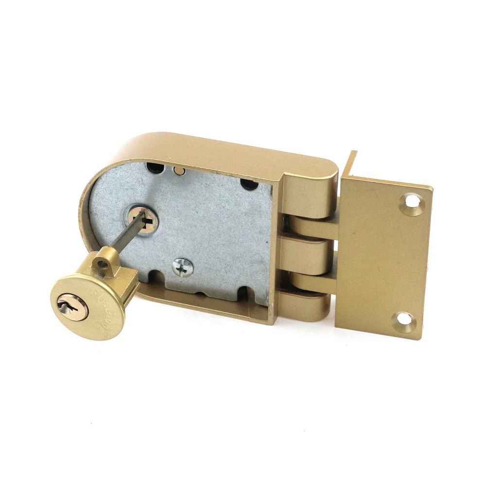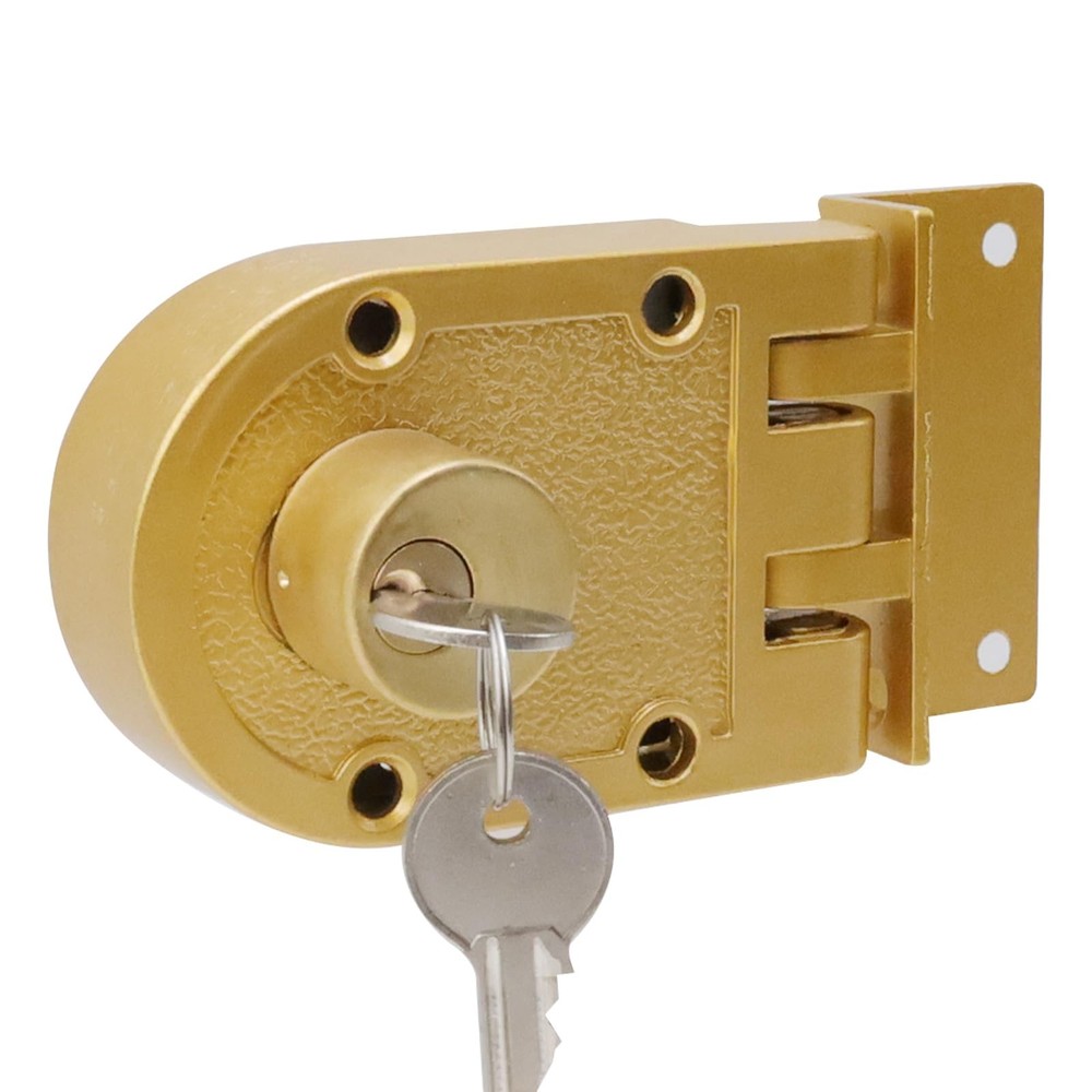 Specification: Net Weight:461g Color:Golden Material:Metal Main Body Size:109 x 73 x 46mm/4.29" x 2.87" x 1.81"(L*W*H) Package Includes: 1 x Jimmy Proof Deadbolt Lock Some Mounting Note: Due to the manual measurement,there may be small deviations. The color may have different as the difference display,please understand. Package Includes: 1 x Jimmy Proof Deadbolt Lock; Some Mounting . Fits door thickness between 1-3/8" to 2-3/8". Main Body Size: 109 x 73 x 46mm/4.29" x 2.87" x 1.81"(L*W*H). Surface installation requires 1 1/4"(32mm) diameter holes keyed deadbolt. tamper-resistant shutter guard against force entry if cylinder is removed, provides added to your home.