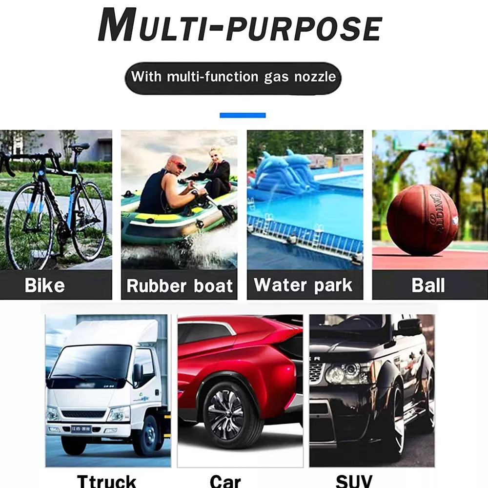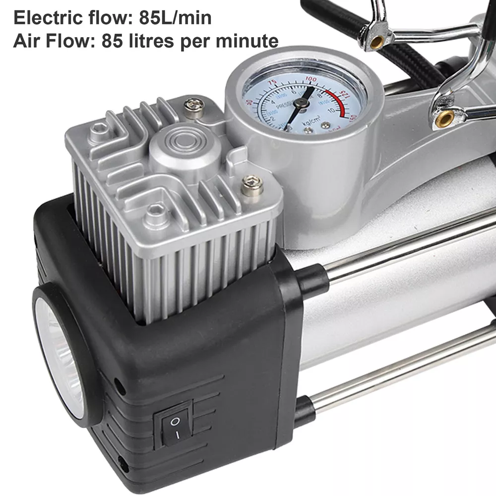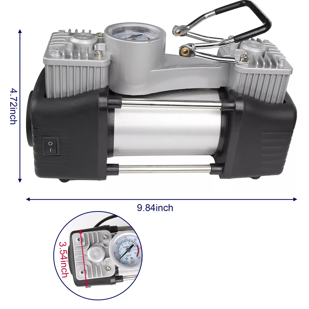 Heavy Duty Portable Air Compressor Car Tire Inflator Electric Pump Auto 12V Item Description Features: ★ Heavy duty air compressor, ideal for inflating many types of tyres including 4WD vehicles and tractors tyres. ★ Huge air flow cylinder 150PSI working pressure, can reach to the normal tire pressure quickly. ★ This lightweight mini compressor is small, compact and portable for easy storage in most vehicle types. ★ Cast metal air pump casing with radiator for better heat dissipation. ★ Supplied with tyre inflator extension adapter and other inflation accessories in the carry bag. ★ Able to inflatebike tyres, car tyres, athletic balls etc. Specification: ★ Type: 2 cylinders Air Compressor ★ Voltage range: DC 12V-13.5V ★ Max Ampere: 30Amp ★ Max Pressure: 150 PSI ★ Air Flow Rate: 70L/min ★ Weight: 2.7kg/5.95Lbs ★ Power Cable Length: 102 IN ★ Hose Length: 118 IN ★ Application: car/electric car/bicycle/motorcycle/ball/kayaking Note: ★ Strictly use it within instructed power voltage DC 12V, do not use high voltage ★ The car motor should be started before using ★ It is better to stop a while after inflating for 15 minutes to extend the lifespan of the motor ★ Generally, when inflate approximately 3 minutes; the normal tire pressure can reach 220KPA. Large tires will need longer time. If the gauge pointer rapidly rising when start inflate, means there is no air going though the tire, you must stop and start over, otherwise, the gauge and the motor will be damaged Package Include: ★ 1 x Portable Air Compressor Pump ★ 1 x Power Cord With Battery Clamps ★ 1 x Extension Air Hose ★ 3 x Inflatable Adapters ★ 1 x Carrying Bag Detail Images Shipment 1.We ship to your eBay or Paypal address. Please make sure your eBay and Paypal address is correct before you pay. 2.Items will be shipped within 1-3 business day when we received payment. 3.Delivery time depends on destination and other factors; 4.International buyers please note: a.Import duties, taxes and charges are not included in the item price or shipping charges. These charges are buyer's responsibility. We will try our best to reduce the risk of the custom duties. b.Please check with your country's customs office to determine what these additional costs will be prior to buying. Payment 1.We accept PayPal only. 2.All major credit cards are accepted through secure payment processor PayPal. 3.Payment must be received within 7 business days of auction closing. 4.We ship to your eBay address. Please make sure your eBay address is correct before you pay. Return & Refund Customer satisfaction is our first priority. We accept return within 30 days after delivery. Buyer is responsible for return shipping and insurance cost. Please email first before returning. We will return the money to you after got the return item(s). We can not refund to you if any broken or damaged of your return item. Please ensure its safety. Feedback Your feedback is very important to us. If you can't leave us a "5-Star" rating and a positive feedback, please contact us first prior before leaving feedback. We are eager to work with our customers. We believe in communication. Give us a call or send us an email, we will make things right for our buyers. Positive feedback for our buyers will be left automatically by eBay Seller Manager Pro. On Sep 2, 2024 at 19:56:23 PDT, seller added the following information: On Sep 17, 2024 at 15:36:07 PDT, seller added the following information: