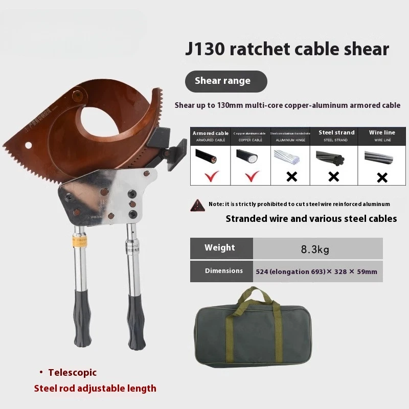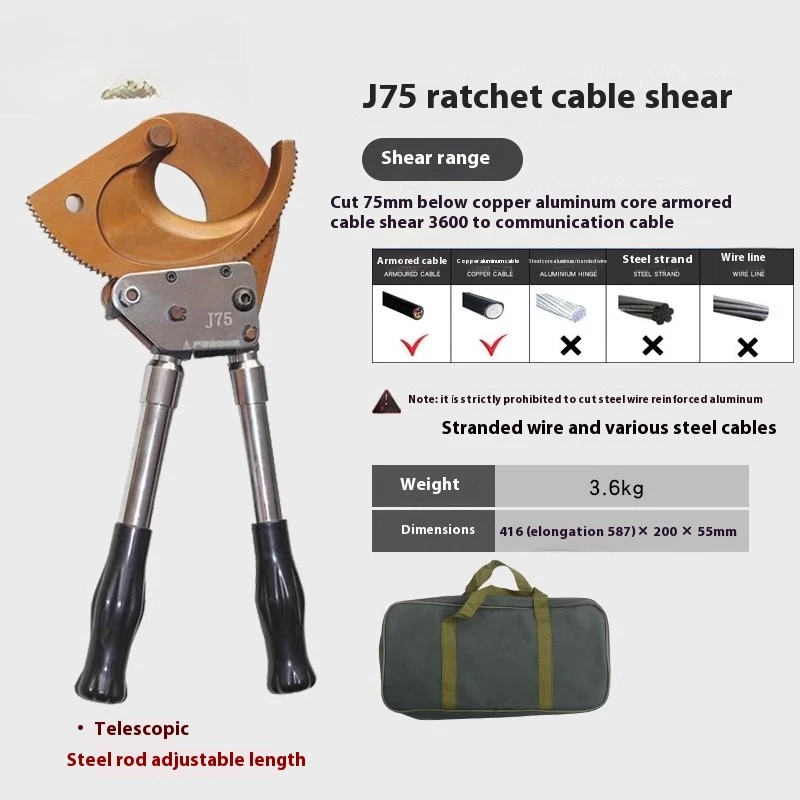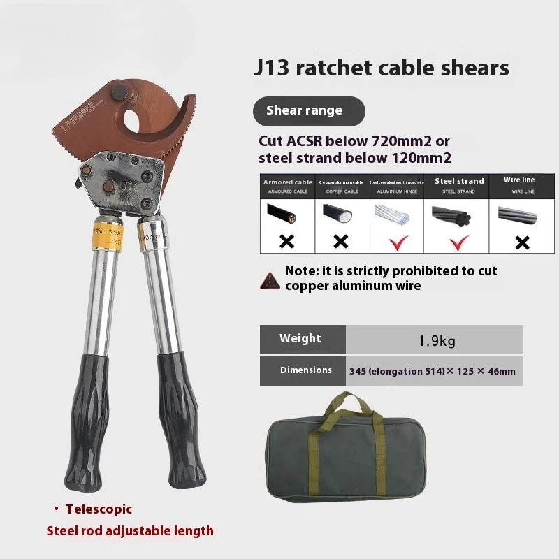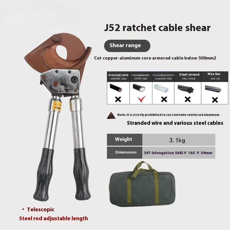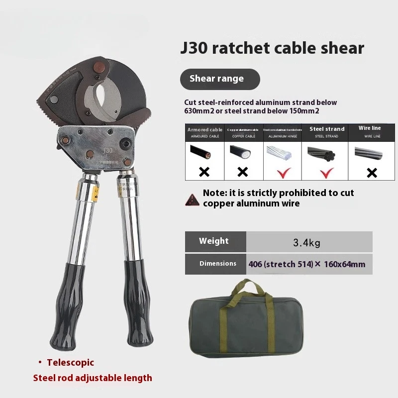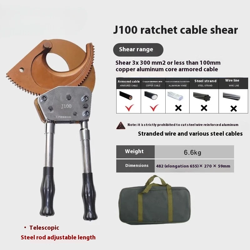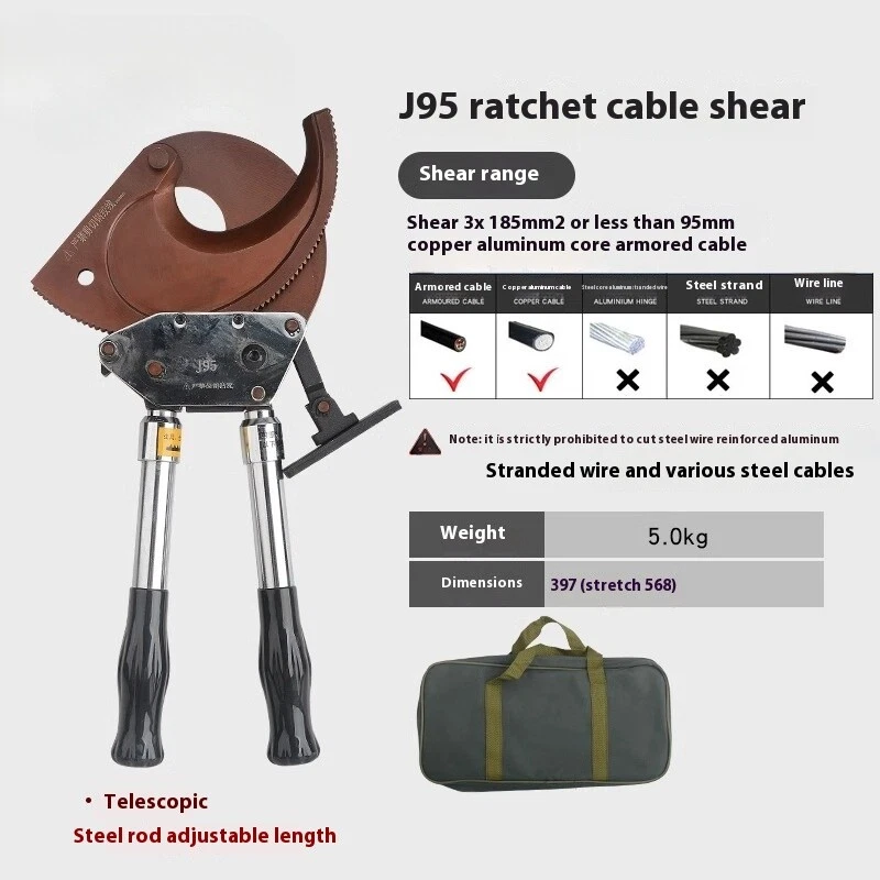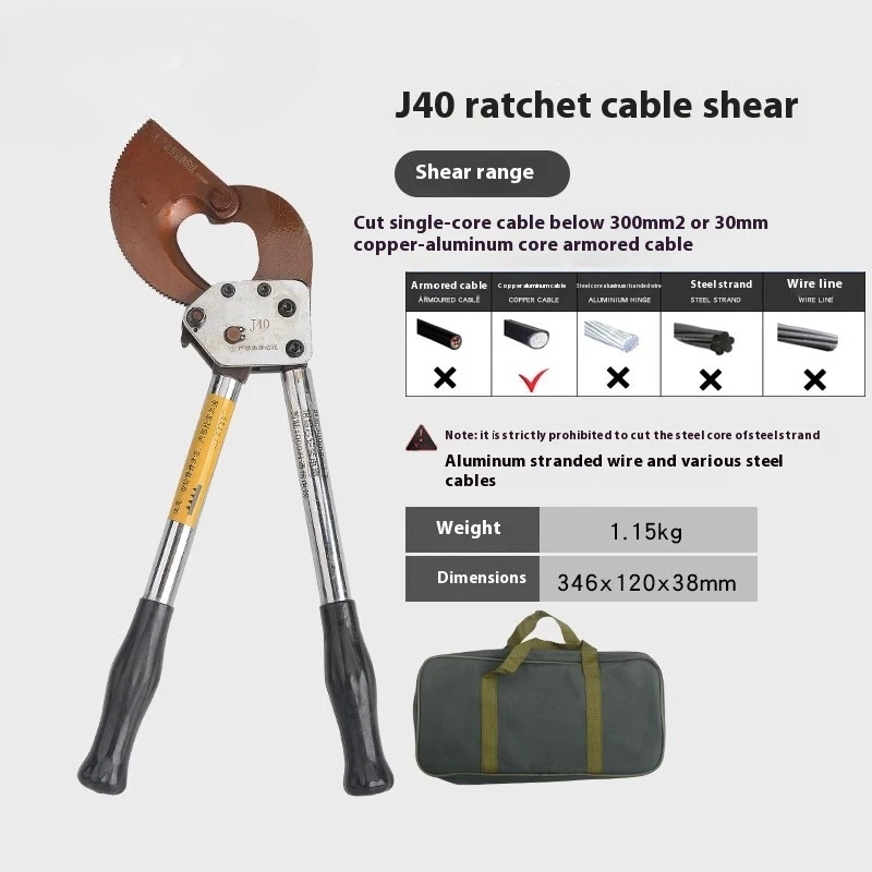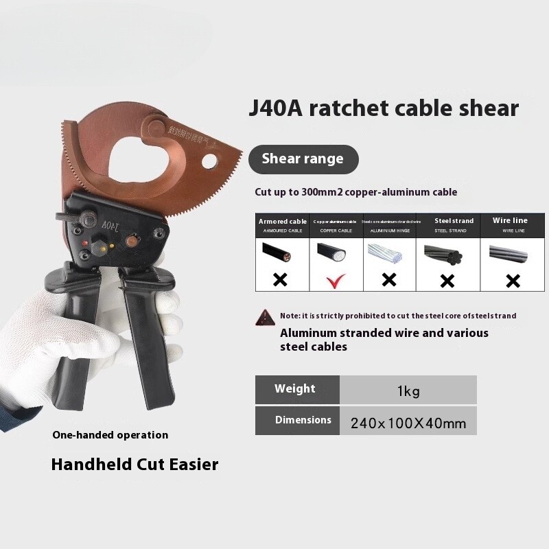 Cable Cutter Cable Wire Cutter Ratchet Breakers Cut Cable Manual Cable Scissors J 40A Ratchet Cable Cutter Weight: 1kg Size: 240x100X40mm Cutting range: cut 300mm ² the following copper and aluminum cable