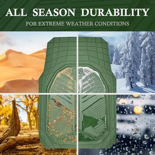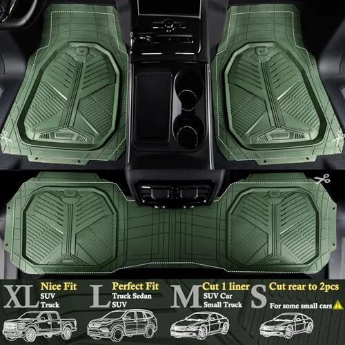 Return Policy Fast Delivery Trusted seller Heavy Duty Rubber Car Mats, Deepdish All Weather Floor Mats for Car Full Set, Universal Automotive Mats Trim to Fit for Sedans SUVs Trucks, Waterproof Anti-Slip Deep Tray 3 Pieces Olive Green Product Description All Weather Protection: The Heavy-duty Deep-Dish rubber car floor mats use for all season durability. Protect your car floors from dirt and debris wear resistant. Easy to clean. DeepDish design of the car mats can holds water, snow, mud, and road salt All Weather-Proof. Trimmable & Universal Fit: T are cuttable lines on the sides of mats, which can be modified according to your vehicle size for a perfect fit. Fast and easy to install in most cars, trucks and SUVs. Thick, heavy duty mats & Liners. Flexible for floor contours and tough for all weather conditions. Anti-Slip Design: The heavy duty car mats use anti slip nail bottom on the back of the mat, which can grip your vehicle's carpet tightly to ensure these floor mats stay in place. Built for Performance: These Odorless durable rubber polymer mats are tested for extreme conditions to ensure they don't crack, deform , curling, cracking, or hardening. Widely applicable to various environments. Dimensions: Total of 3 mats - Set of 2 front mats, 1 rear mat for full coverage. Front Mats, 29.1" x 20.5". Rear Mats 17.7" x 57.1". Both the front and rear seats can be cut according to your desired size. The rear seat mat can be cut into 2 pieces, which is also suitable for cars with obstacles in the middle of the rear seat. Shipping Returns Payment Shipping Shipping is FREE to all addresses other than APO/PO boxes in the lower 48 states. All our stock ships from US-based warehouses. Shipped via USPS or UPS (depending on location and package weight) Unless stated otherwise, all orders will ship within 24-72 hours of your payment being processed. Check our feedback to see the great reviews of FAST shipping we offer. Returns Seller does not accept returns Payment We currently accept payment via eBay managed payments only. Once payment is cleared, we will dispatch your shipment within 1-3 business days. Please refer to the "Shipping" tab for more information regarding shipping speed to your destination.