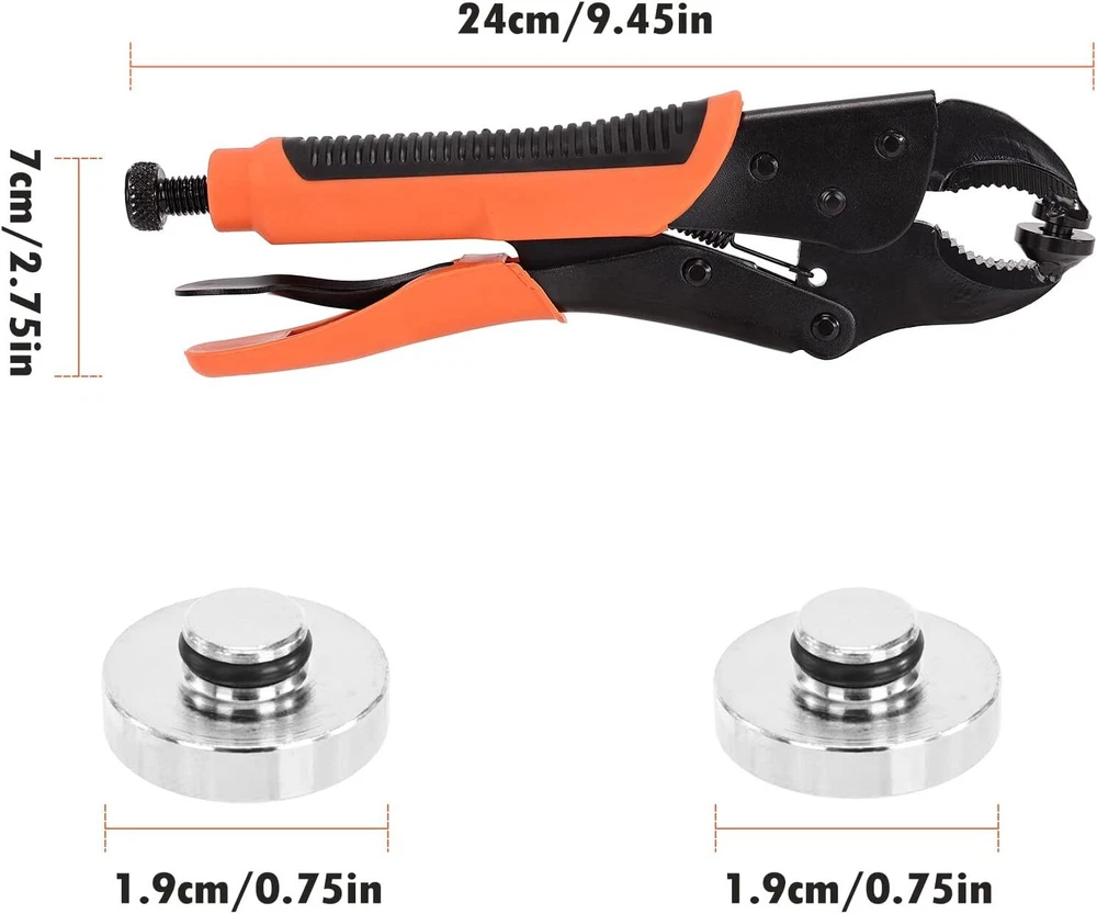 Canvas Snap Pliers : Snap design is super sturdy! Adjustable Plier can avoid falling off when snapping. They were widely used for installing/repairing metal snaps on leather/boat canvas/carpet/tarp/covers/furniture, etc. Easier and Faster : Adjustable pliers design enables greater leverage over die-and-peg snap tools, the vice grip system allows you to get good leverage to crimp the two pieces together, a tighter snap, not easy to fall off. Process for Quench Hardening : snap fastener kit body is phosphate galvanized, and the surface is more wear-resistant, stain-resistant, and harder. The dies on the head of the pliers are additionally heat-treated to make them more robust and durable. Precise Welding, Die Holder Correct Alignment : Highly calibrated and adjustable parts to ensure the jaws are accurately and fully closed, Attach fasteners securely - better than pounding on those installing punches, and stop hurting your hand Our Sincere Service : Any problems or after-sales about our products, please feel free to contact us. We will try our best to solve the problem for you. Your satisfaction is our top priority! Product Description CENOZ!!! The best Snap Fastener Tool!!! Punch Abrasives——Before installing the snap, you need to punch holes. We are equipped with a punching tool so that you can do all the work on the same tool. Save money on punch pliers! Snap design is super sturdy!——The vice grip system allows you to get good leverage to crimp the two pieces together, a tighter snap, not easy to fall off. Fast and effortless——We have made adjustments to the cap and fabric base components to make it easier to follow the snap, and only need to adjust once to complete your work. Quality spring accessories The high-strength traction spring saves effort. When the jaws are opened, the jaws are kept at a fixed angle, and when the jaws are closed, the clamping is firmer. Heat treatment High temperature quenching treatment changes the internal molecular structure of the material, in short, it is more durable and easier to use! Carbon steel rivets solid rivets, fastening structure. Selected rivets to fix the clamp body, safe and durable, and the structure is more stable Super easy to install~ Snap design & Premium Material: Not easy to bend, strong and durable Avoid falling of dies during operation Super easy to adjust~ One-button press release pliers Press the tail of the pliers to release the pliers No need to forcefully open the pliers 2pcs replaceable dies Complete the punch-to-snap installation Faster and more convenient Why Choose CENOZ--Snap Button Kit Tool? Durable snap tool: The snap fasteners kit is strong, the appearance of nickel plating, smooth and uniform, does not easy to fall off, with better rust prevention effect, and can be used repeatedly for a long time. Marine-grade snaps: The extra snaps are digitally machined and are marine-grade snap rings. Widely used: You can use this snap button kit tool to install or replace snaps anywhere you need, Such as on boat covers, canvas canopies, tarps, awnings, or sewn heavy outdoor coverings. Extra 2pcs dies
