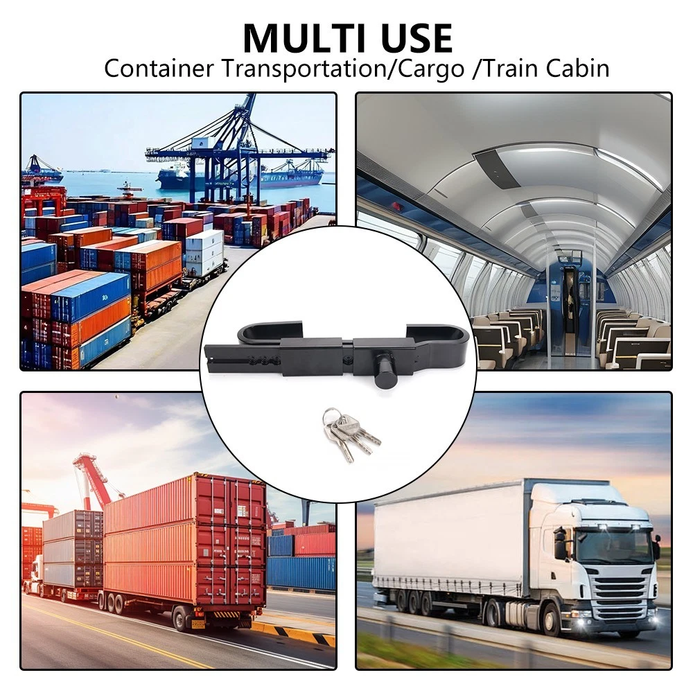 Shipping Container Lock Heavy Duty Steel Trailer Box Cargo Door Lock w/ 3 Keys SPECIFICATIONS: Type: Shipping Container Lock Material: Heavy Duty Steel Locking Distance: 9-18 inches FEATURES: 100% Brand New and Never Used or Installed Adjustable Distance: This shipping cargo lock constructed 9-18in adjustable lockingdistance by slide and align the holes, suitable for most containers, trailers, semi-trailer, truck boxes, please be sure your container doors locking frame distance in thisrange before purchase. Easy to Use: No Mounting Required, insert the shipping container lock from two sideto catch the inner most frame on trailer doors, stop at the most suitable position alignto the lock hole and lock-on, then put on the rubber dusty-prevent protect cover.Easy to lock and unlock in seconds. Excellent Material: This truck trailer lock is made of high-quality heavy duty steel, itis sturdy and durable, perfect to protect your cargoes. The smooth surface is blackpowder painting which is weather-resistant, provide long lasting in outdoor environment. Precision Cylinder Lock: The cargo door lock is made with a precision cylinder lock,it will not be opened abnormally, giving you a full sense of security. Comes with twokeys, one for daily use and one for back up, let you be calm at critical moments. APPLICATION: Quality life cargo container lock design for widely used in container, trailer, semi-trailer, trucks, construction office site, construction site storage boxes and more, toprotect your belongs. PACKAGE INCLUDE: 1 × Shipping Container Lock 3 × Keys NOTE: 1. Please allow 0.5-1 inch difference due to manual measurement. (1 inch=2.54cm) 2 . Please check the size measurement and the picture carefully before making payment. 3. Due to the difference between different monitors, the picture may not reflect the actual color of the item. Please understand, Thank you. SHIPPING INFORMATION PAYMENT WARRANTY ABOUT US CONTACT US SHIPPING INFORMATION We will only ship this item to buyers by Normal Mail, please confirm your address is correct, and if you want to change the delivery address, just feel free to contact us when you purchase. Usually, we will ship the orders out and upload the tracking number within 1-2 business days(Monday to Saturday from 8:30am-5:30pm) after you complete the payment. PAYMENT We will only accept eBay payment. Please pay using eBay payment ONLY within 7 days from the date of transaction be made. WARRANTY Please inspect your order upon receipt.No damage claims will be honored after 14 days of delivery. All item we sold come with 90 days defective warranty from the date. ABOUT US We are a powerful factory producing auto parts,and we have a professional sales and after-sales team that can provide you with excellent products and services. CONTACT US For any reason you want to contact us,We aim at satisfying every visitor, no matter what kind of situation you meet with, we will be right here to serve you. Please contact our team. If you are happy with the transaction with us, leaving us an ALL-5-STAR positive feedback would be greatly appreciated. Have a good shopping.