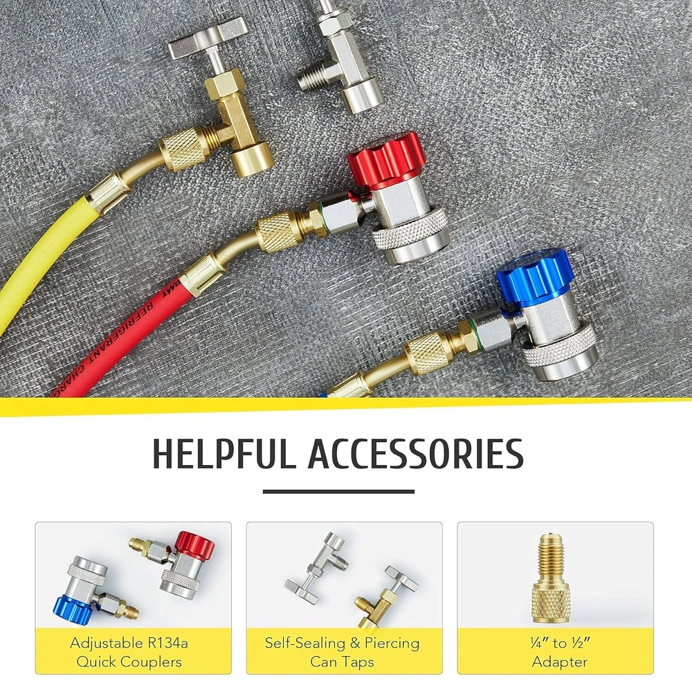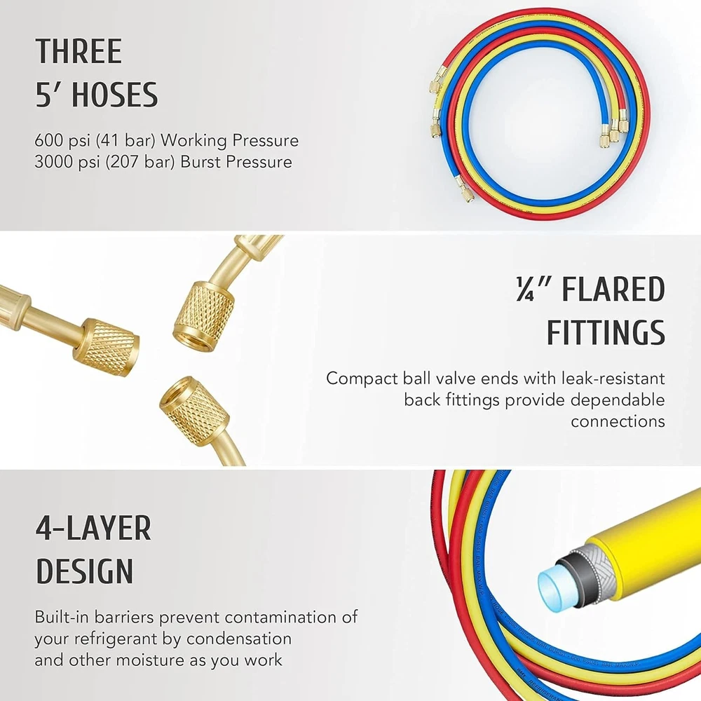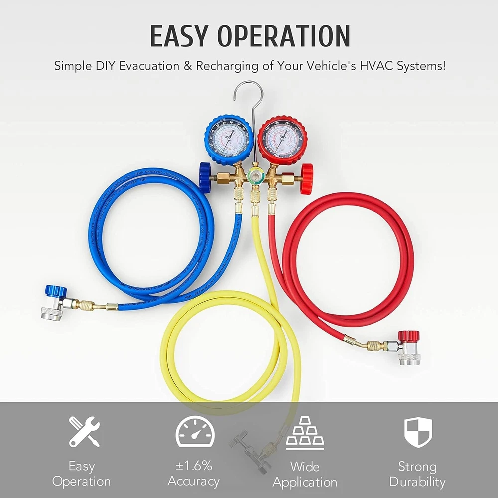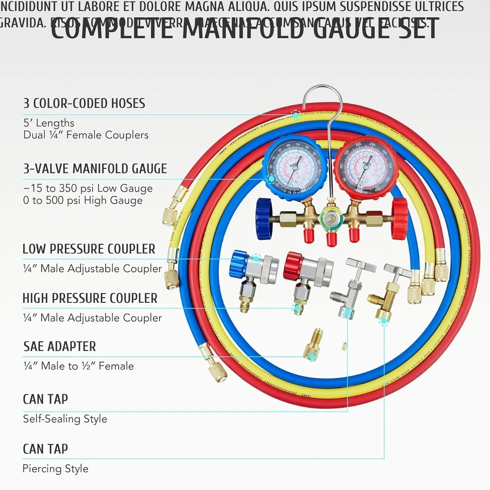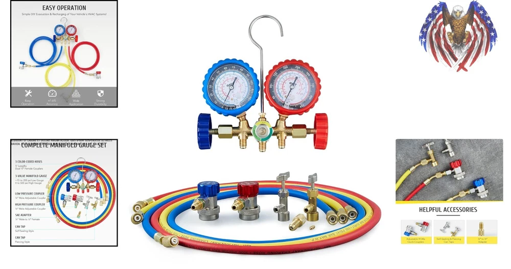 Heavy-Duty AC Gauge Set with 5FT Hoses for R12 R22 R502 Refrigerants - Portable ‹ › ‹ › ‹ › ‹ › ‹ › ‹ › ‹ › ‹ › ‹ › Heavy-Duty AC Gauge Set - Complete Gauge Set with 5FT Hoses for R12, R22, R502 Refrigerants - Portable and Essential Tool for HVAC Maintenance Features: Complete Gauge Set: This professional automotive AC tool kit includes a robust 3-way gauge, 3 color-coded hoses , 2 adjustable 1/4'' quick couplers , a 1/4'' to 1/2'' adapter , and both self-sealing and puncture-style can taps. Hybrid Antishock Gauges: With 2.6" high and low pressure gauges, experience exceptional durability and accuracy. The oil-filled core resists wear and shock, while the dry dial ensures superior winter performance. The built-in moisture indicator keeps track of coolant conditions in real time. Achieve precise measurements with ±1.6% accuracy, thanks to calibration screws. Color-Coded Hoses: Easily distinguish between hoses with blue (low), red (high), and yellow (charging) color coding. These durable PVC hoses feature 4 reinforced layers designed to withstand daily pressures of up to 600 psi, with a burst pressure capacity of 3000 psi. Wide Application: Perfect for R134a, R12, R22, and R502 refrigerants, this set is ideal for DIY enthusiasts and professional HVAC experts alike. Measure your system's pressure, evacuate and refill coolant effortlessly. Benefits: Hassle-free setup for reduced downtime Durable construction delivers long-lasting performance Real-time monitoring for precise maintenance Versatile usage makes it perfect for various refrigerants Designed for both home and professional use Why choose our Heavy-Duty AC Gauge Set? Elevate your HVAC maintenance with our Heavy-Duty AC Gauge Set. Specifically crafted to streamline AC servicing, this comprehensive toolkit ensures you're prepared for any refrigeration challenge. With a premium construction and thoughtful features that provide real-time monitoring, you're guaranteed reliable performance. Don’t compromise on quality—choose our Heavy-Duty AC Gauge Set for precision, durability, and the ultimate efficiency in cooling system management. Order now to ensure peak performance in your HVAC needs! Shipping Free & Fast Shipping - We offer free shipping to most of the USA with a normal delivery time of 3-7 days. However, due to the current situation, additional delivery time (up to 3 weeks) may be required for some items. Alternative Carriers - We may use alternative carriers (e.g. USPS, FedEx, UPS, etc.) to ensure your package arrives safely and on time. Due to the use of multiple carriers, we are unable to provide a tracking number automatically. Handling Time - Orders are processed and shipped within 1-2 business days of receiving cleared payment. Shipping Restrictions - Shipping to Alaska, Hawaii, Puerto Rico, Guam, and other US territories may incur shipping charges or delivery restrictions. Please contact us before ordering, or your order can be refunded/cancelled. State Restrictions - There may be restrictions based on your state of purchase. For example, certain items may not be shipped to California due to state regulations. Contact for Tracking Updates - If you require tracking updates or have any concerns about the delivery of your order, please feel free to contact us, and we will be happy to assist you. Return 30-Day Hassle-Free Returns - We want you to be completely satisfied with your purchase. If you are not, you can return the item within 30 days of receiving it for a full refund or exchange. Easy Return Process - To start a return, simply contact us and we will provide you with a prepaid return shipping label and detailed instructions. Restocking Fee - There are no restocking fees for returns. However, the buyer is responsible for return shipping costs if the return is not due to a seller's error. Refund Processing Time - Refunds will be processed within 5 business days of receiving the returned item in its original condition. Payment We accept all major credit cards, PayPal, and Apple Pay for your convenience. Your payment information is secure and encrypted to ensure a safe and seamless transaction. Please complete your payment within 3 days of purchase to avoid any delays in shipping. Feedback Your feedback is extremely important to us. We strive to provide the best products and customer service possible. If you are satisfied with your purchase, please take a moment to leave us a positive review. If you have any concerns or issues with your order, please contact us before leaving negative feedback. We are committed to resolving any problems and ensuring your satisfaction. Contact Us If you have any questions or concerns, please feel free to reach out to our customer support team. You can contact us through the eBay messaging system. We are available Monday to Friday, 9:00 am to 5:00 pm EST, and we will do our best to respond to your inquiry within 24 hours. Thank you for supporting our small family business! UPC: Not Set Model: AC Gauge Set Unit Quantity: 1.6 kg Gauge Purpose: Charging,Evacuation,Pressure,Temperature,Test,Vacuum Refrigerant: MO99,R-12,R-123,R-1234yf,R-12a,R-134a,R-22,R-290,R-401a,R-401b,R-402a,R-402b,R-407a,R-407c,R-408a,R-409a,R-410a,R-414b,R-416a,R-422b,R-422c,R-422d,R-427a,R-448a,R-502 Items Included: Blue Low Side Hose,Clamp Probe,Red High Side Hose,Vacuum Oil,Yellow Service Hose,3-way gauge,3 color-coded hoses,1/4'' to 1/2'' adapter,self-sealing can tap,puncture-style can tap Features: Mechanical,Hybrid,Antishock,Dry,Liquid-filled,Moisture indicator,Calibration screws,High accuracy Brand: Unbranded Color: Blue Type: AC Gauge Set Vacuum Units: PSI Gauge Fill: Oil Item Length: Not Set Item Width: Not Set Item Weight: 1.6 kg MPN: Not Set Number of Valves: 2 Year Manufactured: Not Set Country/Region of Manufacture: Not Set Manufacturer Warranty: Not Set Unit Type: Unit