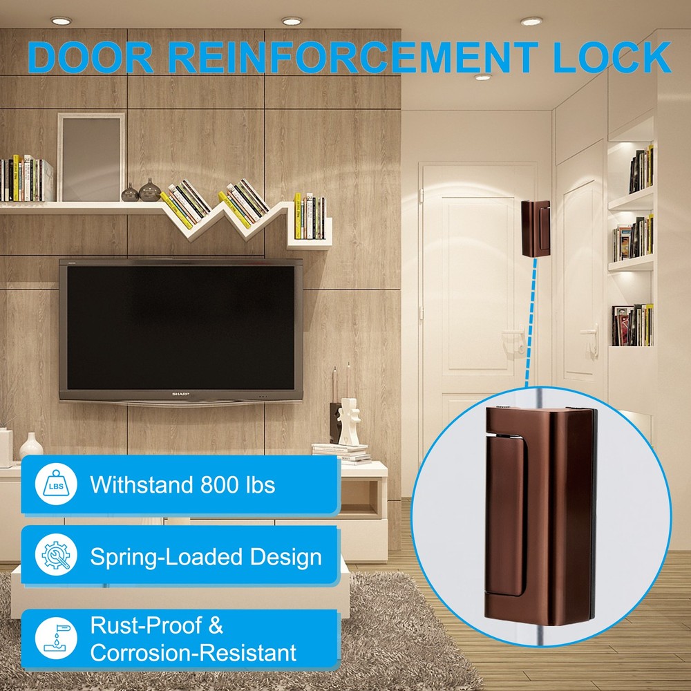 Document The high-security door reinforcement locks help prevent doors from being knocked away enhancing your home security and keeping you and your family safe! Make sure none of the doors can be opened from the outside.SpecificationColor: BrownMaterial: aluminum AlloyMaximum Withstand Capacity: 800 LbsMounting Plate Size: 63.5 x 56 x 1.95 mm/ 2.5 x 2.2 x 0.08 inch (L*W*Thickness)Lock Part Size: 76 x 25.4 x 35 mm/ 2.99 x 1 x 1.38 inch (L*W*H)Screw Mounting Distance: 20mm/ 0.79 inchScrew Length: 28.9mm/ 1.14 inchPacking List: 1 x Door Reinforcement Lock with 4 ScrewsAdvantage1. The security door lock is made of aluminum alloy with electroplating technology on the surface which is rust-proof moisture-proof corrosion-resistant comfortable to touch durable and has a long service life.2. The home anti-theft door lock is a tamper-resistant child-safe lock that prevents unauthorized entry through lock bumping. Designed to withstand up to 800 pounds of force when opening an interior door it enhances home security and prevents doors from being knocked away keeping your family safe.InstructionEquipped with 4 pieces of 28.9mm(1.13") screws and operation manual to help ensure an easy and quick installation.To unlock pinch the top and bottom of the door lock. Then slide the lock sideways along the door towards the hinge direction until it can be pulled outward.NOTE: Please measure the door plate thickness before ordering. Home Security Door Lock Aluminum Reinforcement Lock Withstand 800Lbs Brown The high-security door reinforcement locks help prevent doors from being knocked away enhancing your home security and keeping you and your family safe! Make sure none of the doors can be opened from the outside. Specification Color: Brown Material: aluminum Alloy Maximum Withstand Capacity: 800 Lbs Mounting Plate Size: 63.5 x 56 x 1.95 mm/ 2.5 x 2.2 x 0.08 inch (L*W*Thickness) Lock Part Size: 76 x 25.4 x 35 mm/ 2.99 x 1 x 1.38 inch (L*W*H) Screw Mounting Distance: 20mm/ 0.79 inch Screw Length: 28.9mm/ 1.14 inch Packing List: 1 x Door Reinforcement Lock with 4 Screws Advantage 1. The security door lock is made of aluminum alloy with electroplating technology on the surface which is rust-proof moisture-proof corrosion-resistant comfortable to touch durable and has a long service life. 2. The home anti-theft door lock is a tamper-resistant child-safe lock that prevents unauthorized entry through lock bumping. Designed to withstand up to 800 pounds of force when opening an interior door it enhances home security and prevents doors from being knocked away keeping your family safe. Instruction Equipped with 4 pieces of 28.9mm(1.13") screws and operation manual to help ensure an easy and quick installation. To unlock pinch the top and bottom of the door lock. Then slide the lock sideways along the door towards the hinge direction until it can be pulled outward. NOTE: Please measure the door plate thickness before ordering. Hot Item Payment 1.We accept eBay payment . 2.Payment must be received within 7 business days of auction closing. Shipping 1.We ship to your eBay or Paypal address. Please make sure your eBay and Paypal address is correct before you pay. 2.Items will be shipped within 1-3 business day when we received payment. 3.Delivery time depends on destination and other factors. Description Policy Home Security Door Lock Aluminum Reinforcement Lock Withstand 800Lbs Brown The high-security door reinforcement locks help prevent doors from being knocked away enhancing your home security and keeping you and your family safe! Make sure none of the doors can be opened from the outside. Specification Color: Brown Material: aluminum Alloy Maximum Withstand Capacity: 800 Lbs Mounting Plate Size: 63.5 x 56 x 1.95 mm/ 2.5 x 2.2 x 0.08 inch (L*W*Thickness) Lock Part Size: 76 x 25.4 x 35 mm/ 2.99 x 1 x 1.38 inch (L*W*H) Screw Mounting Distance: 20mm/ 0.79 inch Screw Length: 28.9mm/ 1.14 inch Packing List: 1 x Door Reinforcement Lock with 4 Screws Advantage 1. The security door lock is made of aluminum alloy with electroplating technology on the surface which is rust-proof moisture-proof corrosion-resistant comfortable to touch durable and has a long service life. 2. The home anti-theft door lock is a tamper-resistant child-safe lock that prevents unauthorized entry through lock bumping. Designed to withstand up to 800 pounds of force when opening an interior door it enhances home security and prevents doors from being knocked away keeping your family safe. Instruction Equipped with 4 pieces of 28.9mm(1.13") screws and operation manual to help ensure an easy and quick installation. To unlock pinch the top and bottom of the door lock. Then slide the lock sideways along the door towards the hinge direction until it can be pulled outward. NOTE: Please measure the door plate thickness before ordering. Hot Item Payment 1.We accept eBay payment . 2.Payment must be received within 7 business days of auction closing. Shipping 1.We ship to your eBay or Paypal address. Please make sure your eBay and Paypal address is correct before you pay. 2.Items will be shipped within 1-3 business day when we received payment. 3.Delivery time depends on destination and other factors.