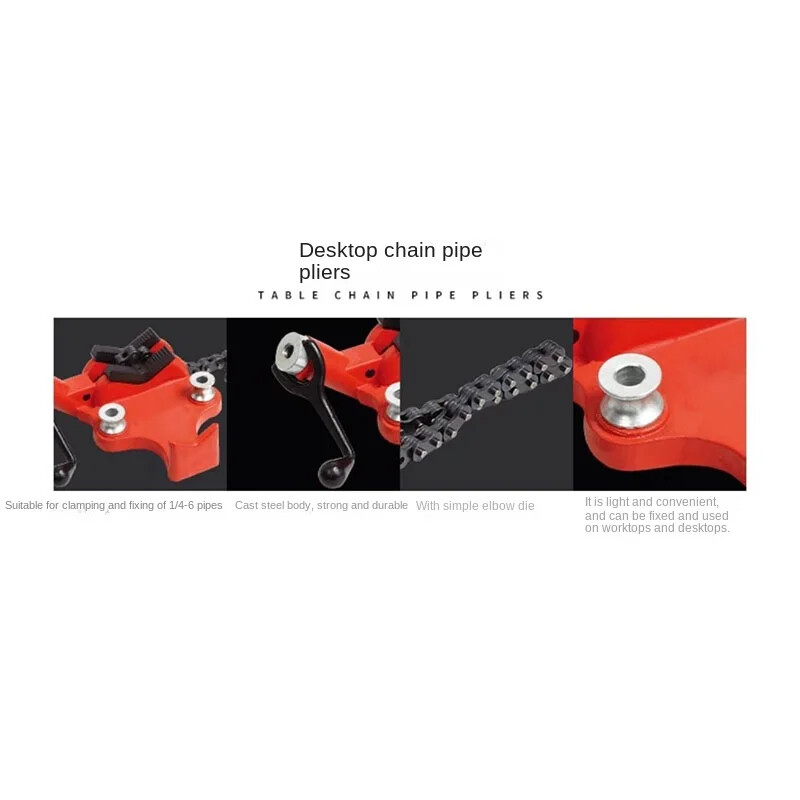 TD1105S2.5/S4/S5/S6 Benchtop Chain Pipe Bench Vise with Cast Iron Base and Crank 6 Inch Screw Table Manual Vise Clamping Bend Name: Chain pipe pliers About this product Features and details 【High capacity】 Bench vises have a large pipe capacity and are used to secure pipes from 1/8 to 5 inches (3.2 mm to 127 mm). The vise grips pipe easily and smoothly over a range of diameters. [Frame is sturdy and durable] This 5-inch pipe vise is designed with a heavy-duty cast iron base, neoprene-coated jaws, and heavy-duty chain for superior stability and durability for a long life. [Fatigue-free operation] With the hand crank, you can use this home bench vise effectively. You can use steel handles and chains to securely secure the pipe and hold it in place. 【Easy to install】 The chain clip mounts easily and quickly to any safe surface such as a workbench, truck or tripod. It's small and light. 【 widely used 】 Vise is suitable for fixing and bending large pipes and other bulky materials and is widely used in industry or home.
