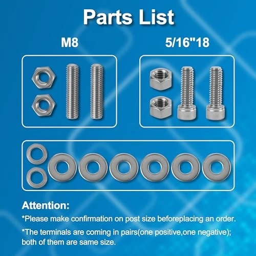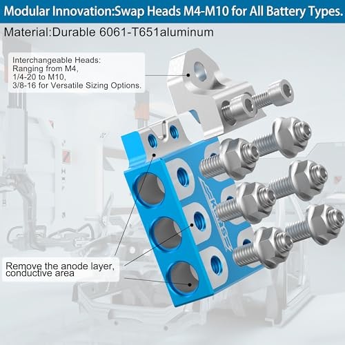 Menu 1. We require immediate payment. 2. We currently accept payment via eBay managed payments only. 3. Once payment is cleared, we will dispatch your shipment within 1-3 business days. Please refer to the "Shipping" tab for more information regarding shipping speed to your destination. Modular Heavy-Duty Battery Terminal, 8AWG to 4/0 AWG, Automotive Battery Terminals, Compatible with Bolt Down & Threaded Batteries, M8 (5/16”-18) Product description Innovative Split Design Battery Terminal: This terminal comes with an interchangeable head of a fixed size (M8), specifically designed for M8 lead-acid battery posts. Other head sizes (M4, M5, M6, M10, 1/4-20, 5/16-18, 3/8-16) are offered as optional accessories and can be purchased separately, facilitating easy customization for For Battery Type: Optimally designed for Lead Acid Batteries including AGM, GEL, WET, MF, and CA/CA types. Our battery terminal connectors are versatile, perfectly fitting various battery post types such as Side Post, Bolt Down, and Screw Down. Anodic Oxidation Removed to Form Conductive Zone: battery terminal block are crafted from heat-treated 6061-T6 aluminum alloy and precision-engineered through CNC machining, offering high accuracy and durability. These clamps feature unique color anodization for outstanding corrosion resistance. Additionally, for improved electrical performance, the area w the battery post and power cable connect has the anodic layer removed to establish a conductive zone, ensuring seamless conductivity. car battery terminal connector Compatibility: Our 6-hole, 12-Way battery clamps terminal are crafted to snugly accommodate 00 (2/0) AWG welding cables and are equally efficient with other gauges including 1/0 AWG, 2 AWG, 4 AWG, 6 AWG, and 8 AWG. A total capacity of up to 12 cables ensures adaptability for various car and car audio battery terminal needs. military battery terminals heavy duty Broad Applications: Our car battery terminal extender is designed to cater to a wide variety of vehicles, from common ones like cars, pickups, and motorcycles to larger units like caravans, RVs, buses, and trucks. Safeguarding Innovation: Patent Application Underway for Product Uniqueness and Customer Protection, Highlighting Our Dedication to Quality and Preventing Imitations. PLEASE MESSAGE US IF YOU HAVE ANY OTHER QUESTIONS, AND MANY THANKS FOR READING ALL OF THIS. Copyright ©#. All Rights Reserved.