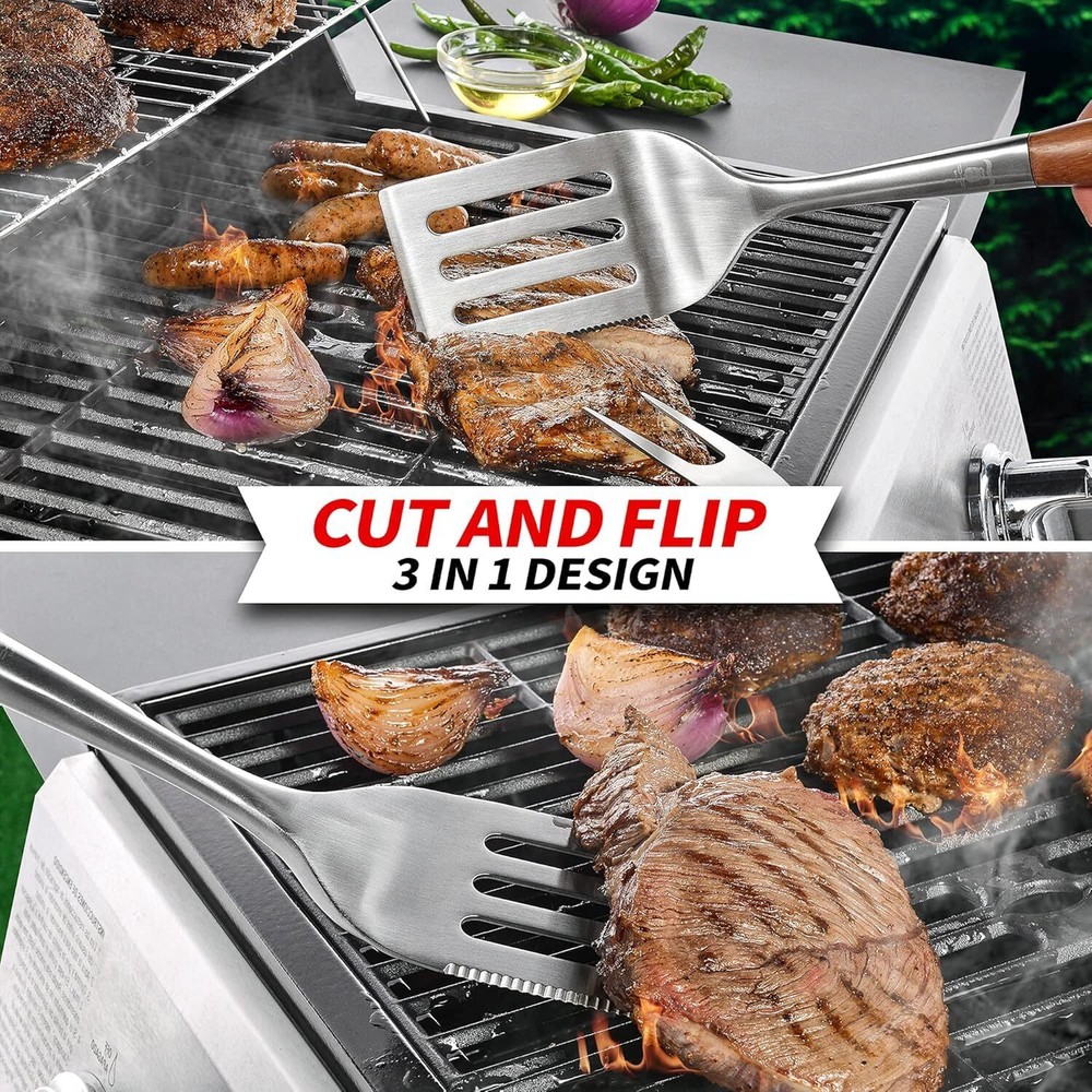 Absolutely love this BBQ tool set! The rosewood handles feel premium and sturdy, while the thick stainless steel heads are built to last. The contoured grip fits perfectly in my hand, making flipping and turning meat effortless. The three essential tools cover all my grilling needs, and the classic wood finish looks great next to my outdoor setup. No more flimsy grill toolsโthis set is a game changer! Highly recommend for anyone who takes their BBQ seriously.