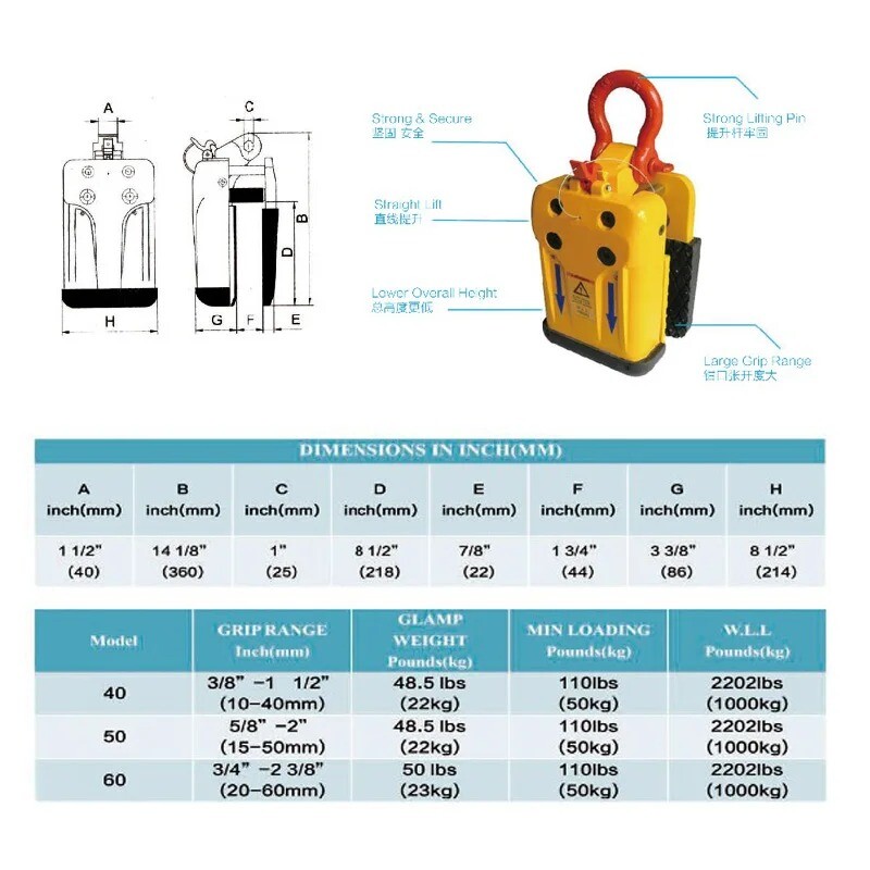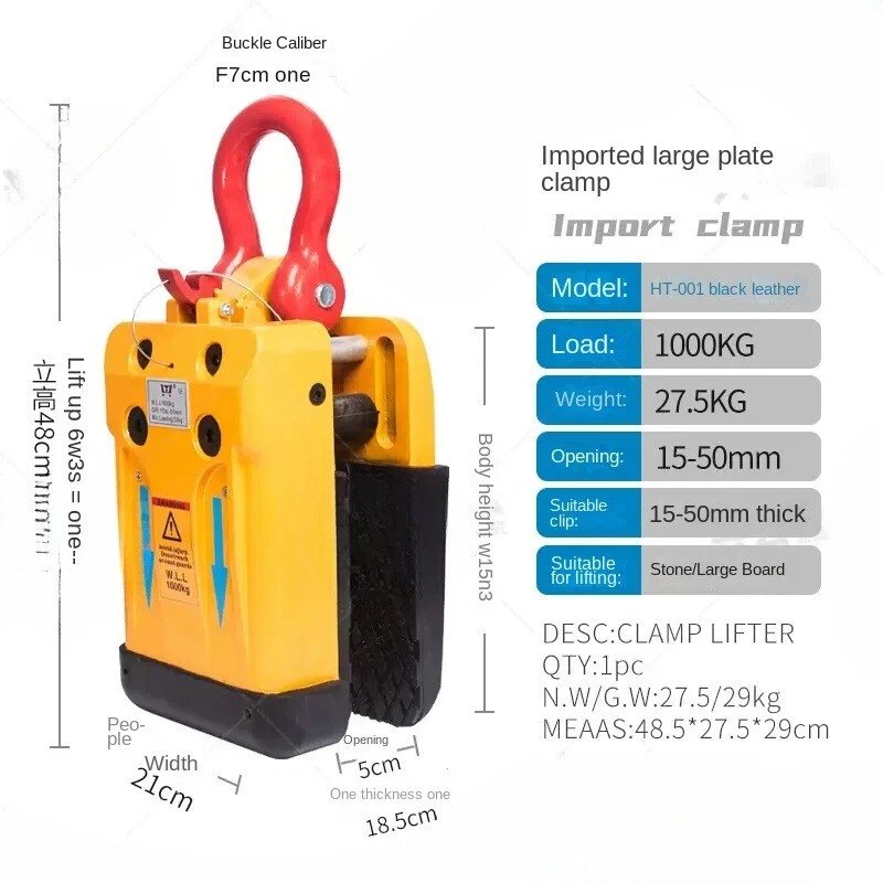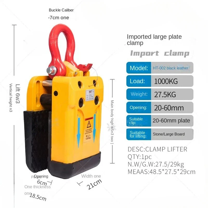 Stone slab lifting clamp large plate handling tool granite marble Lifting slab lifter lift within 1000kg Features: 1. This stone slab lifter is designed to transport granite, marble, engineered stone slabs. These lifters have a compact design allowing them to operate in areas where little headroom or space between slabs is an issue. 2. Vulcanized rubber on the clamps ensures the stone will not be damaged. These clamps can carry up to 2,200 lbs... 3. The application for material thicknesses of 15 to 60 mm, with the rubber line jaws developed to handle material in slab or sheet from stacked in racks, without damaging the material's surface. 4. They have a number of advantages over common lifting devices. This tool is the most commonly used slab lifter in the stone industry.