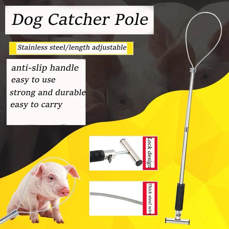 Rod-type holder is designed to reduce the animals resistance to the device, makes holding pigs much easier. Do you want a kind of professional adjustable holder pig catcher? Do you want to hold your pig steady while needed? This can be your best choice. Really practical and useful, just use this tool to hold your pig, cattle or sheep steadily. Features ❶Color: Silver and Black. ❷Material: stainless steel ❸Color: Silver. ❹Size: Minimum length of rod: 24 inch. Wire rope length: 20.5 inch. Rope diameter: 0.16 inch. ❺Weight: 2.07LBS. ❻Package Including 1 x pig holder catcher 【Design】Dog catcher pole is safe to hogs, scientific design, fast and efficient. Simple and reasonable strucment is very easy to use. 【Adjustable Size】The length of the dog catcher pole is adjustable. Minimum length of rod: inch. Weight: 2.35LBS. Longest rod length: 24in. Wire rope length: 20.5in, Rope diameter: 0.16in. 【Locking Noose Mechanism】Dog catcher pole features a reliable locking noose that can be easily tightened or loosened with one hand, providing quick and humane capture. 【Material】The catch poler made of stainless steel material, Thickness wire rope is safe and smooth, not easy to be broken. 【Easy to Use】This animal catcher pole will hold the animal in place with ease. Press the compression spring to change the length of hook. Easy to operate, you can use this animal control pole by yourself.