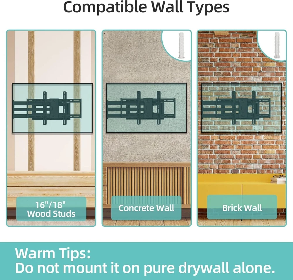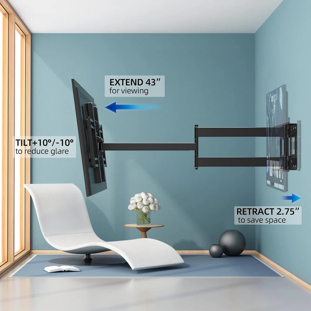 Heavy-Duty TV Mount for 42-80 Inch Displays, 43-Inch Full Motion Extension Arm ‹ › ‹ › ‹ › ‹ › ‹ › ‹ › ‹ › ‹ › ‹ › ‹ › ‹ › Heavy-Duty TV Mount for 42-80 Inch Displays Upgrade your viewing experience with this premium full motion TV mount designed for maximum flexibility and safety. Features: 43-Inch Extra Long Arm: Pull your TV out from the wall up to 43 inches to meet diverse viewing needs, and retracts to just 2.75 inches for space-saving convenience. Infinite Viewing Angles: Swivel left or right 180° and tilt 10° up or down to eliminate glare and optimize your experience, accommodating various seating arrangements. Wide Compatibility: Fits any flat or curved TV from 42 to 80 inches, compatible with major brands like Samsung, LG, Sony, and more. VESA patterns from 200x200mm to 600x400mm. Easy Installation: Includes pre-divided hardware and clear instructions for hassle-free wall mounting on wood studs, brick, or concrete walls. Level adjustment post-installation ensures a perfect fit. Safe and Stable: Heavy gauge steel construction with a robust 110lb load capacity offers peace of mind, reducing the risk of accidents due to earthquakes or playful mischief. Benefits: Maximize viewing pleasure by customizing the position of your TV. Wide-ranging compatibility means you can use this mount with almost any television. Safe construction guarantees long-term support for your device. The ideal solution for optimizing your space with a sleek and sophisticated design. Why Choose Our Heavy-Duty TV Mount? Are you ready to elevate your home entertainment setup? Our Heavy-Duty TV Mount combines exceptional strength, versatility, and ease of installation to create the ultimate viewing experience. No more awkward neck craning or limited angles; enjoy a seamless mix of style and functionality that enhances every room. Don't leave your TV's potential untapped—transform your space today with this must-have mounting solution! Shipping Free & Fast Shipping - We offer free shipping to most of the USA with a normal delivery time of 3-7 days. However, due to the current situation, additional delivery time (up to 3 weeks) may be required for some items. Alternative Carriers - We may use alternative carriers (e.g. USPS, FedEx, UPS, etc.) to ensure your package arrives safely and on time. Due to the use of multiple carriers, we are unable to provide a tracking number automatically. Handling Time - Orders are processed and shipped within 1-2 business days of receiving cleared payment. Shipping Restrictions - Shipping to Alaska, Hawaii, Puerto Rico, Guam, and other US territories may incur shipping charges or delivery restrictions. Please contact us before ordering, or your order can be refunded/cancelled. State Restrictions - There may be restrictions based on your state of purchase. For example, certain items may not be shipped to California due to state regulations. Contact for Tracking Updates - If you require tracking updates or have any concerns about the delivery of your order, please feel free to contact us, and we will be happy to assist you. Return 30-Day Hassle-Free Returns - We want you to be completely satisfied with your purchase. If you are not, you can return the item within 30 days of receiving it for a full refund or exchange. Easy Return Process - To start a return, simply contact us and we will provide you with a prepaid return shipping label and detailed instructions. Restocking Fee - There are no restocking fees for returns. However, the buyer is responsible for return shipping costs if the return is not due to a seller's error. Refund Processing Time - Refunds will be processed within 5 business days of receiving the returned item in its original condition. Payment We accept all major credit cards, PayPal, and Apple Pay for your convenience. Your payment information is secure and encrypted to ensure a safe and seamless transaction. Please complete your payment within 3 days of purchase to avoid any delays in shipping. Feedback Your feedback is extremely important to us. We strive to provide the best products and customer service possible. If you are satisfied with your purchase, please take a moment to leave us a positive review. If you have any concerns or issues with your order, please contact us before leaving negative feedback. We are committed to resolving any problems and ensuring your satisfaction. Contact Us If you have any questions or concerns, please feel free to reach out to our customer support team. You can contact us through the eBay messaging system. We are available Monday to Friday, 9:00 am to 5:00 pm EST, and we will do our best to respond to your inquiry within 24 hours. Buy it now and enjoy a pleasant shopping experience! UPC: Not Set Maximum Weight Fitment: 110 lb Unit Quantity: 23.9 Year Manufactured: Not Set VESA Hole Pattern: Not Set Features: Articulating arms Brand: Unbranded Type: Full Motion Maximum Screen Size Fitment: 80 in MPN: Not Set Unit Type: lb Color: Black Country/Region of Manufacture: Not Set Manufacturer Warranty: Not Set