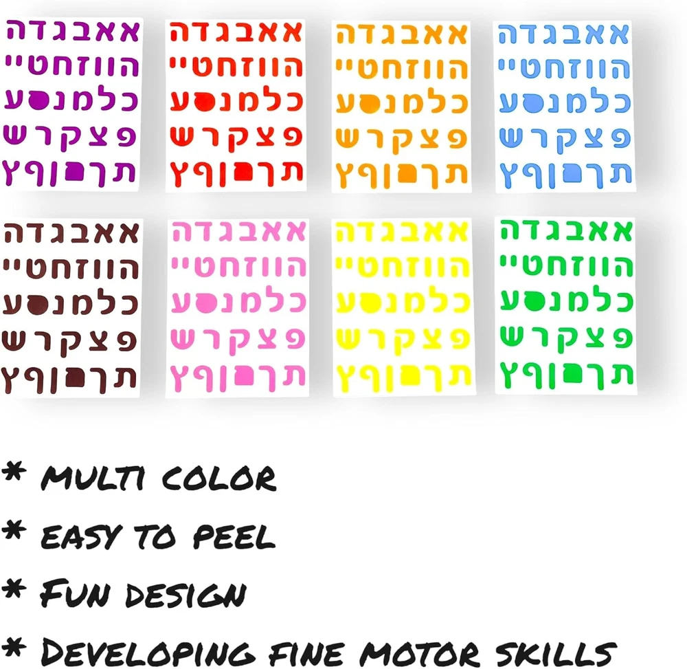 Store New Arrivals Add to Favorite View Feedback Contact Hebrew Letter Stickers 8/16/48 Sheets with over 240/480/1400 Stickers for Kids Learning Hebrew, Hebrew Alphabet Stickers, Hebrew Teaching Materials (48) Description Reusability Single Use Item Package Quantity 48 Item dimensions L x W x H 6 x 4.5 x 0.3 inches Number of Pieces 48 Indoor/Outdoor Usage Indoor Color Multi Color Pattern Letter Print Shape Square Unit Count 1488.0 Count Surface Recommendation Wood Material Paper Item Weight 2.39 ounces Theme Hebrew Letters Age Range (Description) Kid Recommended Uses For Product Scrapbook Item Form Sheet Product Dimensions 6 x 4.5 x 0.3 inches Cartoon Character Hebrew Letters Number of Items 48 Package includes: Hebrew Letter Stickers in a variety of 8 colors, 48 sheets, and over 1400 Stickers Function: stickers are perfect for kids learning Hebrew, creating Hebrew cards, and other crafts Easy to use: the Stickers have a strong adhesive making it easy to peel for kids Application: use stickers for Hebrew learning projects, flash cards, art projects, scrapbooks, Hebrew memory game Specifications: stickers made from high-quality paper with color variety. Sheet size 5" x 6". Stickers size 0.7" Product Description Amazing Hebrew Learning Hebrew Learning with Our Hebrew Letter Stickers Assortment: The kids craft stickers set includes a total of 8/16 sheets in variety of colors, for fun Hebrew learning and Jewish alphabet decoration on gifts and more Modern design These Modern designs Hebrew stickers are full of bright and fun colors. The Hebrew letter stickers for kids let children learn Hebrew Letters in a fun, easy, hands-on way. Designed With Kids In Mind! Perfect for kids, toddlers, and school supplies: Spend time learning Hebrew alphabet with your kids, or for kids learning in Hebrew school. The kids can stick the Hebrew letters on paper, notebooks, scrapbooks, create Hebrew games or Hebrew flash cards, and different Hebrew arts and crafts projects. Over 240/480 Stickers: Celebrate learning Hebrew Alphabet with our fun Alef Bet stickers for kids Highest Quality The Hebrew Alphabet chart stickers for kids are made of the highest quality materials and are durable and very easy to apply Great for Young The alphabet Hebrew letters stickers for kids are designed to be used by young kids and toddlers. Perfect for use at home or in school Kids Easy to Peel The colorful Hebrew letter stickers are designed for an easy peel & stick usage. Perfect fun activity for young kids and preschoolers in Jewish school ABOUT US We offer the best prices around on high quality products. Our E-store includes media such as books, movies, music and games while offering electronics, toys, sporting apparel, clothing, tools, general home, garden items and more. SHIPPING We are always working hard to ensure your package arrives as soon as possible. Please understand that some factors like weather, high postal traffic, and the performance of shipping companies are outside of our control. We offer free shipping to the lower 48 states and ship within 2 business days of payment, usually sooner. We do not accept P.O. Boxes. Please provide a physical address. For shipping outside of the continental USA, we only use eBay's Global Shipping Program.The item is shipped to KY and then sent to the rest of the world. International customers are responsible for all duties and taxes. Continue to check out in order to calculate costs for shipping the item to your country. Messages regarding eBay's Global Shipping Program MUST be directed at eBay EXCLUSIVELY. RETURNS We offer a 30-Day Return Policy on items which you are not completely satisfied with. You have the option for a full-refund or an exchange of the item. No returns are available on items shipped outside of the USA. PAYMENT We accept PayPal. CONTACT US This page content is yet to come Please ad us to your favorite seller and visit again later Thank You CUSTOMER SATISFACTION We try our very best to make sure every customer is completely satisfied. If there's a problem, message us! We're happy to help. WE ACCEPT Copyright © 2021 AutoDS. | All Rights Reserved