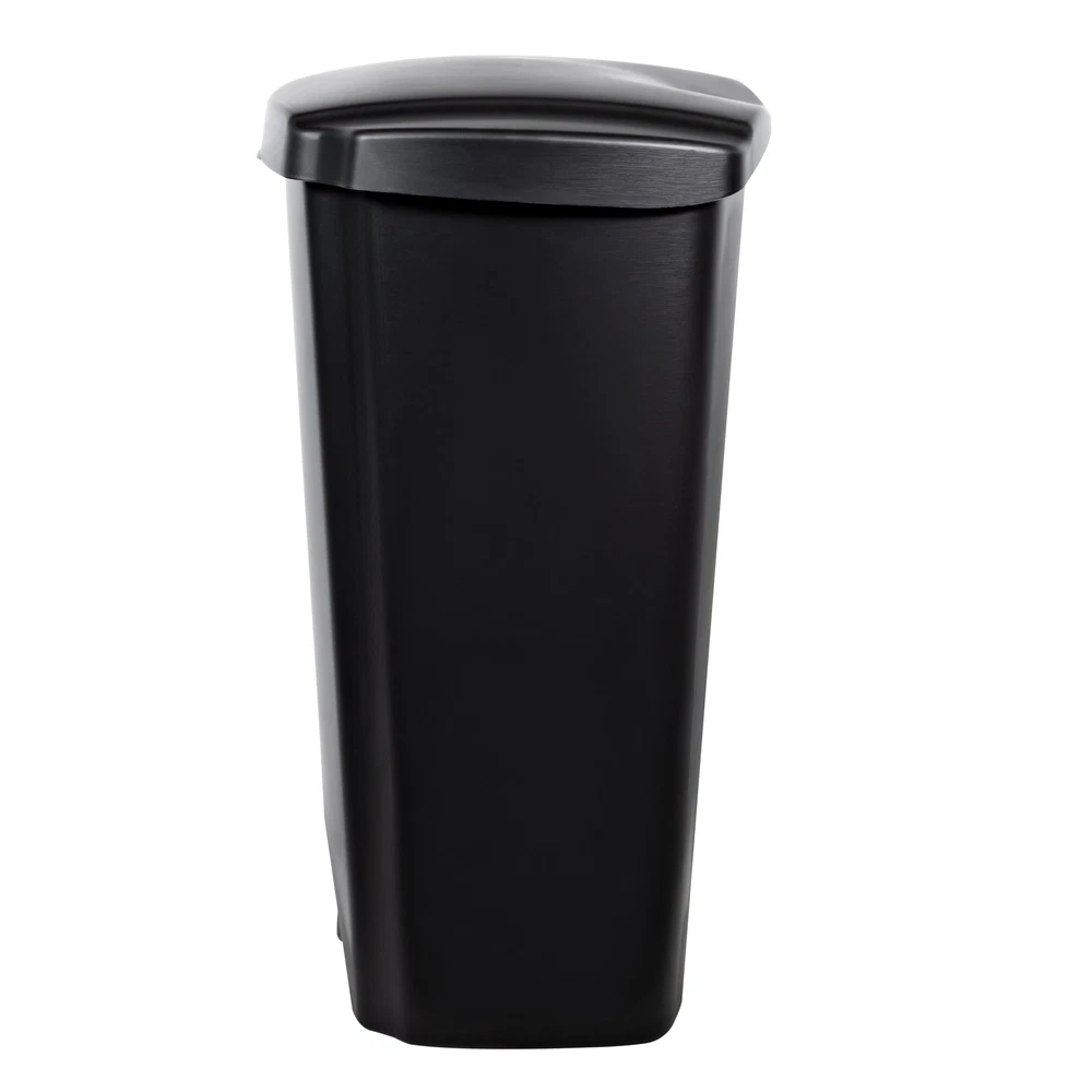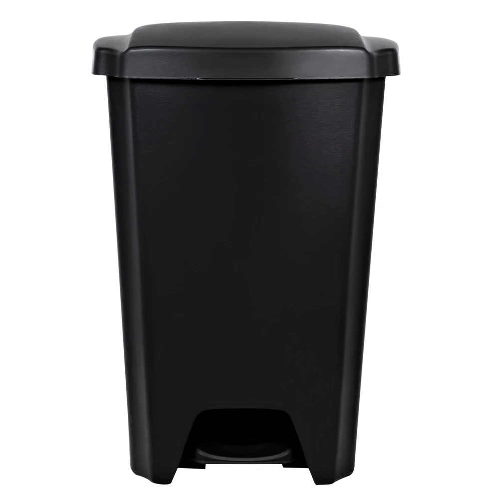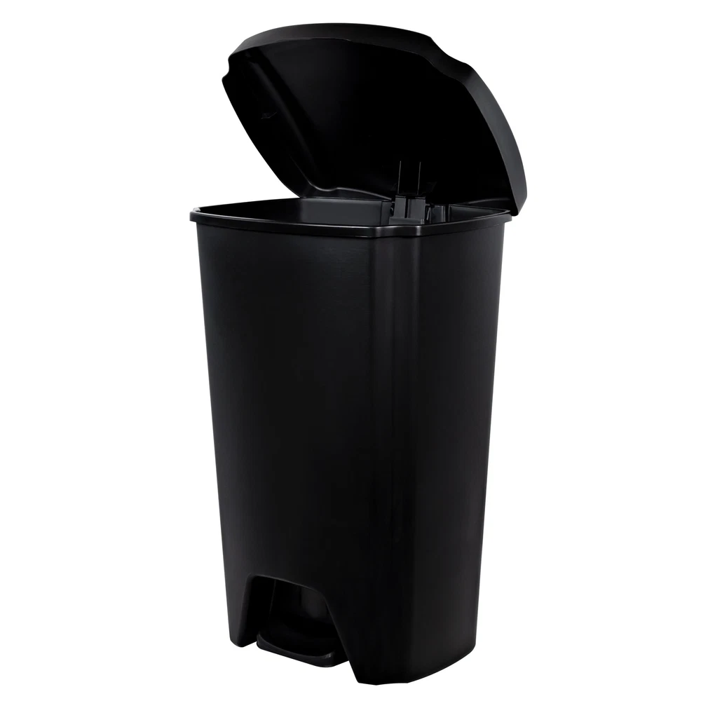 This Hefty Step On trash can in black makes cleanup a breeze with its hands-free operation. Just step on the pedal to dispose and enjoy a silent, soft close. Use with confidence, knowing that it has been engineered to withstand over 22,000 steps. Keep a 13-gallon trash bag secure by utilizing the notches at the top of the bin. This classic and functional waste solution is sure to be a household staple for years to come. On Dec 22, 2024 at 17:41:52 PST, seller added the following information:
