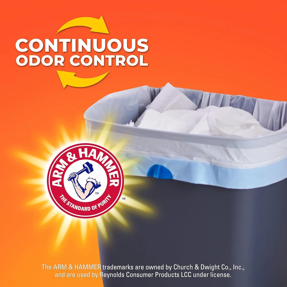Hefty Medium Trash Bags, Fabuloso Scent, 8 26 Count (Pack of 1), Product Details Brand: Hefty Capacity: 8 Gallons Unit Count: 26.0 Count Recommended Uses For Product: Bathroom Trash, Kitchen Waste Material Feature: Heavy Duty Color: Fabuloso Material: Plastic Item Form: Bag Scent: Fabuloso Number of Items: 1 Item Weight: 0.77 Pounds Item dimensions L x W x H: 2.87 x 7.3 x 2.87 inches Manufacturer: Reynolds Consumer Products UPC: 013700307256 Global Trade Identification Number: 10013700307253 Product Dimensions: 2.87 x 7.3 x 2.87 inches Item Weight: 12.4 ounces Country of Origin: USA Item model number: 00E88532 Batteries required: No Included Components: Medium Trash 8 GALLON GARBAGE BAGS—This package contains 26 Hefty Medium white, Fabuloso* scented, 8 gallon trash bags ARM & HAMMER* ODOR NEUTRALIZER**—Fabuloso scented patented odor neutralizer harnesses the power of ARM & HAMMER to fight nasty odors to keep your home smelling fresh DEPENDABLE DRAWSTRING CLOSURE—Take your trash from can to curb with confidence with these trash can liners FABULOSO SCENT—Extend the joyful scent of Fabuloso to all spaces throughout your home with these medium trash bags The Hefty strength and reliability you need from your garbage bags, now in a size perfect for those little messes. Hefty Medium Trash Bags are the ideal size for medium cans all throughout your home: bathrooms, bedrooms, home office and more. And, with the power of ARM & HAMMER odor neutralizers, these Fabuloso scented trash bags will keep any room smelling fresh. A durable drawstring closure helps keep trash inside the can and off the floor during bag removal and closure, so you can take out the trash with confidence. Whatever small messes life throws at you, you can count on Hefty Trash Bags to help you clean it up. Don’t forget; all Hefty garbage bags are backed by a 100% satisfaction guarantee. *Fabuloso® and associated designs are trademarks of Colgate-Palmolive Company and are used under license. **The ARM & HAMMER trademark is owned by Church & Dwight Co., Inc., and used by Reynolds Consumer Products LLC under license.