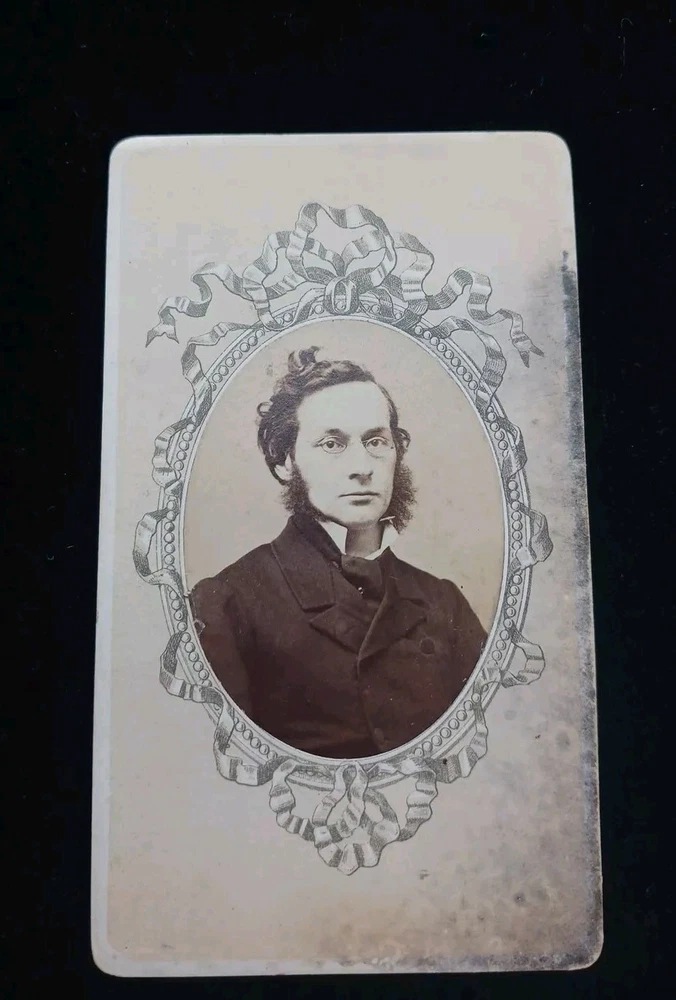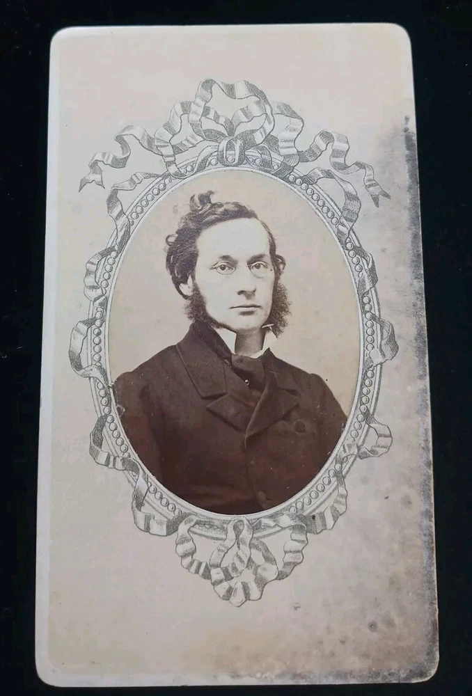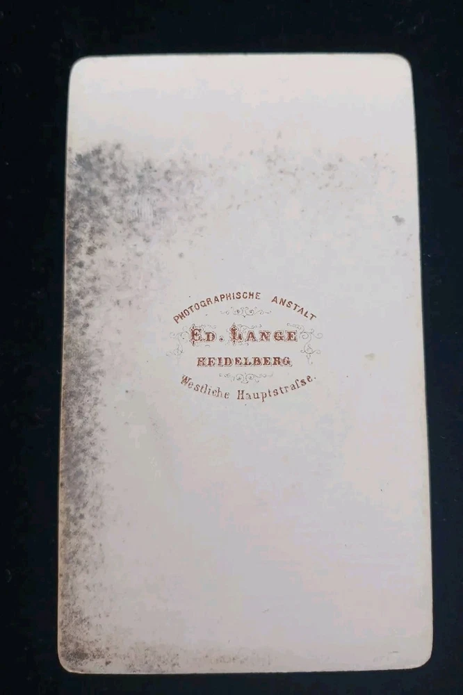 This is a carte de visite taken in the studio of Lange in Heidelberg Germany. I suspect this is a professor at the University. Very academic eccentric looking fellow with mutton chop sideburns and glasses. Antique carte de visite.