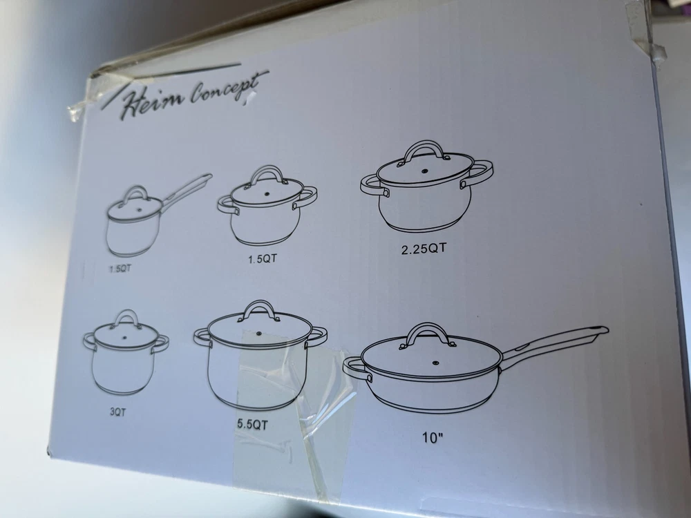 Heim Concept W-001 Cookware Pots & Pans Set Silver Stainless Steel (12-Piece) Description Heim Concept W-001 Cookware Pots & Pans Set Silver Stainless Steel (12-Piece) . Product Detail • Brand : Heim Concept • Model : Heim Concept W-001 • Color: Silver • Type : Cookware Pots & Pans Set Please message me if you have any questions.