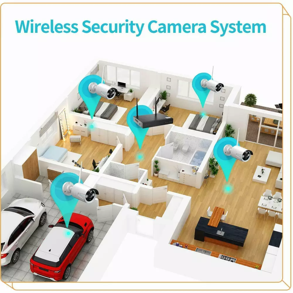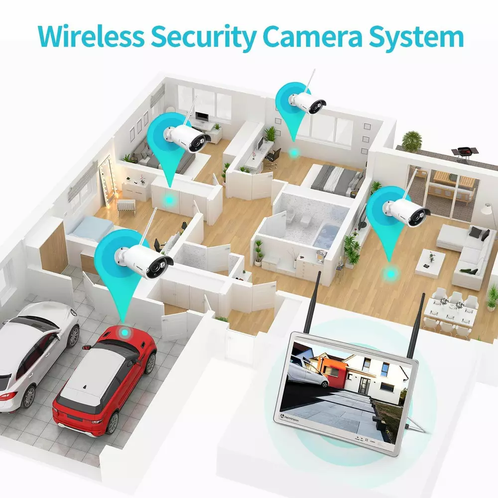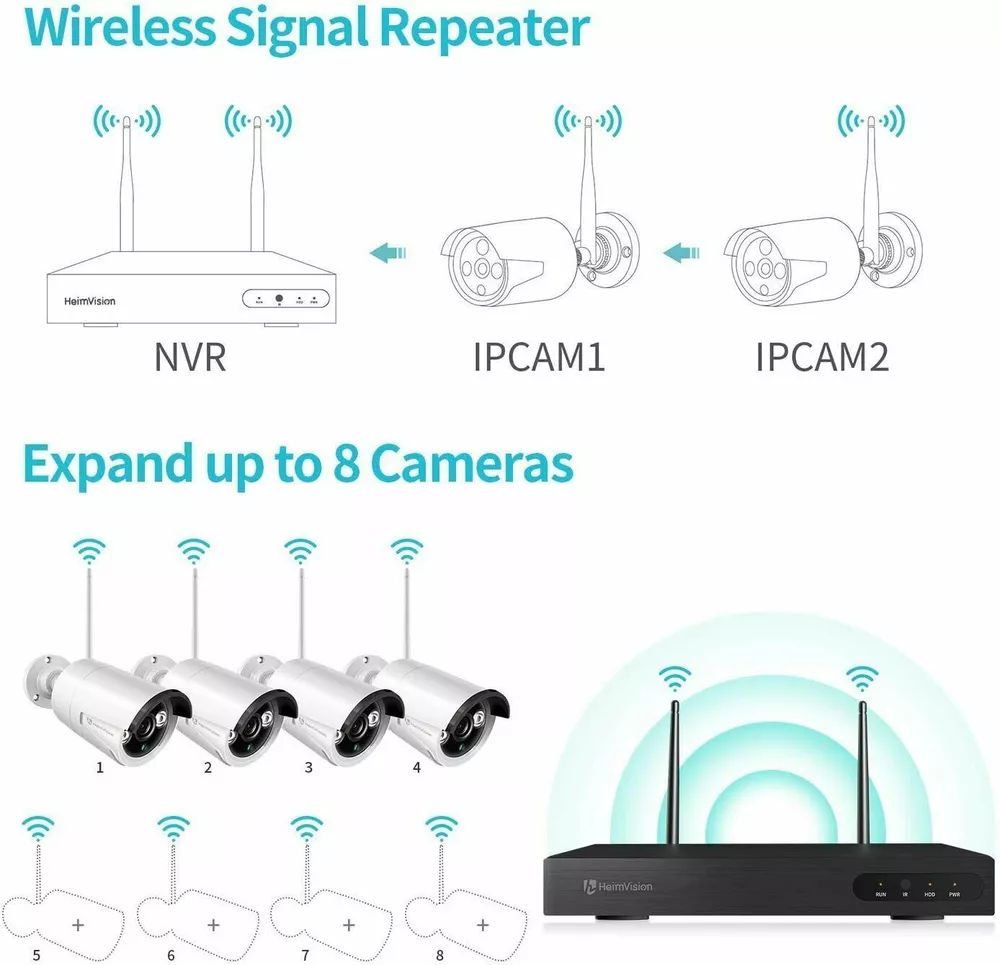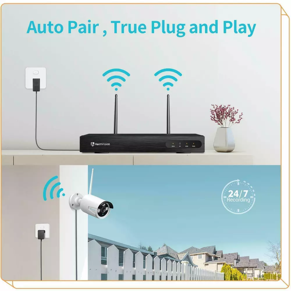 EL_Star Store Store Categories Store Categories Projector Tablet & PC Home Security Drone Electronic Home & Garden Other HeimVision Wireless Security Camera System 8CH NVR 12'' LCD Monitor Outdoor CCTV Item Description HeimVision HM243 1080P Wireless Security Camera System with 12 inch LCD Monitor, 8CH NVR 4Pcs Outdoor/Indoor WiFi Surveillance Cameras • Note 1: Hard Drive is NOT Included (HDD means Hard Drive Disk) • Note 2: Wireless means wireless Internet connection, but also need to be plugged in the power supply/outlet for 24/7 recording. Wireless Camera is different from Wire-free camera, the power cable is still required to get electricity for 24/7 surveillance purposes. Wireless means that there is no video cable between cameras and NVR, easy to install. Features: All-in-One and Easy Setup: Heimvision wireless CCTV camera system features a 12" full HD 1080P monitor (Not Touch Screen). The wireless cameras and NVR monitor are auto-paired during the factory setting. Just need to connect the wireless cameras and NVR with Power Supply provided for 24/ 7 surveillance purposes. Perfect for villa, home, office, shop, hotel, warehouse, school, business or elsewhere. (Wireless means wireless Internet connection, but also need to plug-in power supply) IP66 Weatherproof Security Camera: Records in 1080P Full HD to capture sharp and crisp images, provide crystal-clear HD live video, ensures crisp smooth footage day and night with 2.0 Megapixel bullet cameras. 1080P NVR is an HD video recorder for recording, transmission, and storage, etc. (Hard drive MAX 6TB support. Not Included HDD). Up to 15m Night Vision. The IP cameras are rated as dust-tight and waterproof and cover with durable housing. Best choice for your outdoor home security. Motion Detection and Email Alert: HeimVision wireless surveillance camera system provide to minimize false alarms. Smart notifications with email/ snapshot alerts will be pushed to your smartphone via iPhone/ Android App when motion is detected. Customize your own detection plan and zone for each camera, you will get extra peace of mind by receiving instant alerts and get notified of what’s happening. Mobile Remote Viewing: Connect the NVR to the home router via Ethernet cable provided, then download free app ''HeimKits'' into your mobile device. This video recorder system supports video preview, recording, sync-playback, backup, motion detection, and email alarm. You can remote access simultaneously on smart devices(IOS、Android) at any time, anywhere with WiFi/ 2G/ 3G/ 4G on smart Phone, Pad, and PC. You’ll never miss out on a moment with remote and local playback, no matter where you are. Robust Quality and Service: Security camera system boast a durable and long-lasting design. With well-experienced engineers and dedicated support team, we are always standing by your side and ready to help you. If you have any questions, please feel free to contact us. The expandable system can support up to 8 cameras. Comes with 1x 8-channel 1080P LCD NVR and 4 x 1080P wireless IP66 Cameras. Additional cameras can be purchased on our front store: CA01 Extra camera. Technical Specifications: Product Dimensions: 12.6 x 7.1 x 10.6 inches Item Weight: 8.5 pounds Camera Resolution: 1080P Angle of Field: 110° Night Vision Range: 50ft Power Input: DC 12V 1A for cameras Power Input: DC 12V 2A for the NVR APP: HeimKits PC Client: Eseecloud What’s in the Box: 1 x 8CH 1080P Wireless Network Video Recorder (12inch Monitor Wireless NVR) 4 x 1080P 2.0MP IR LEDs IP Cameras with 5DB Extension Antenna 4 x 10FT Power Supply (12V/1A) Power Adapter for Security Cameras 1 x 3.3FT Power Supply (12V/2A) for NVR recorder 1 x Screw for Hard Drive' Installation 4 x Screw for Bullet Cameras' Installation 1 x 3.3FT Network Cable 1 x USB Mouse 1 x User Manual HeimVision HM241 Wireless 1080P HD Security IP Camera System 8CH NVR WIFI Night Vision * Note 1: Hard Drive NOT Included (HDD means Hard Drive) , only supports 2.4G wifi , not support 5G , The PTZ Camera could not de added to the NVR system. * Note 2: Wireless means wireless Internet connection, it is not battery camera , it is powered via the US plug ( included) Specifications NVR/DVR Box : 8-Channel NVR Box Resolution: 1080P Camera Resolution: 4Pcs/ 1080P Hard Drive: Not included Free App: Heimkits/ IP Pro Connection Type: LAN Cable/ 2.4G WiFi Display: HDMI/ VGA Weatherproof : IP66 Night Vision: 65ft Features: Motion Detection, Email Alert, Video Loss Alert, Privacy Protection Features: Plug & Play and Easy Setup: The wireless cameras are paired with the NVR system at the manufacturing site. Just power on and serve yourself with 24/7 surveillance. Perfect for villa, home, office, shop, hotel, warehouse, school, business or elsewhere you wish. (Refer to the manual for further usage) IP66 Weatherproof Security Camera: Records in 960P HD to capture crisp images, provide HD live video, ensures smooth footage day and night with 1.3 Megapixel bullet cameras. Up to 50ft Night Vision. The IP cameras are rated as dust-tight and waterproof. Best choice for your outdoor home security Motion Detection and Email Alert: Smart notifications with email/ snapshot alerts will be pushed to your smartphone when motion is detected. Customize your own detection plan and zone for each camera, you will get extra peace of mind by receiving instant alerts and get notified of what's happening to your smartphone via iPhone/ Android App Infrared. Clear Day Night Vision: Featuring 3.6mm LEDs with IR CUT function, 110 viewing angle, 50ft Night Vision range. The camera's infrared mode is automatically activated in low lighting conditions. It can clearly monitor everything even at night. Mobile Remote Viewing: Connect the NVR to the router then download the free app ''IP Pro'' into your Phone, Pad, or PC. You can remote access simultaneously on smart devices at any time, anywhere with Wi-Fi/ 2G/ 3G/ 4G. You will never miss out on a moment with remote and local pla