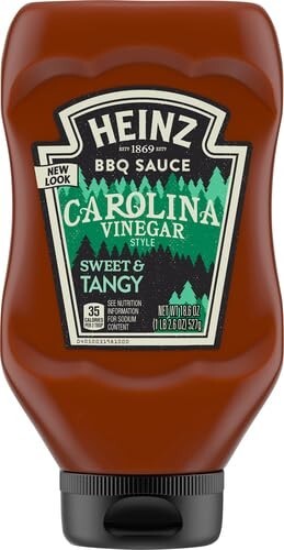 About this item HEINZ CAROLINA VINEGAR STYLE BBQ SAUCE: One 18.6 oz bottle of Heinz Carolina Vinegar Style BBQ Sauce FLAVORFUL BBQ SAUCE: Heinz Carolina Vinegar Style BBQ Sauce is a sauce the entire family loves INSPIRED BY CAROLINA FLAVOR: Carolina-style barbecue sauce inspired by the flavors of one of America’s best BBQ regions ONE-OF-A-KIND FLAVOR: Made with white vinegar and apple cider vinegar for a one-of-a-kind tangy flavor GREAT FOR CHICKEN, RIBS & MORE: Great on chicken, pork and ribs, either as a BBQ marinade or for use as a table sauce SQUEEZE BOTTLE: Easy to use squeeze bottle CERTIFIED KOSHER: Our BBQ sauce is great for those keeping Kosher