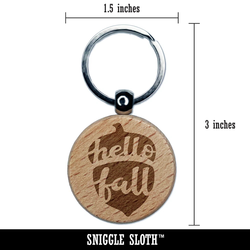 Hello Fall Acorn Engraved Wood Round Keychain Tag Charm