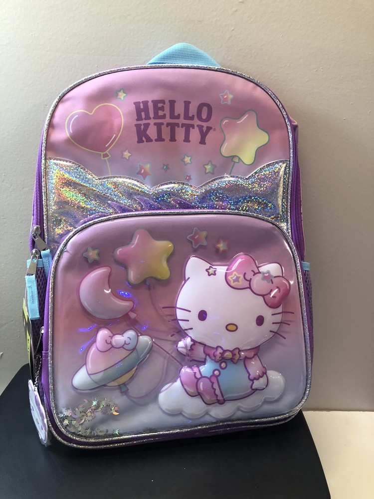 Hello Kitty 17" Backpack "On A Cloud" w/ Keychain – Girls' School Bag – NEW Condition: Brand New – Unused with original tag and attached keychain Shipping Info: Buyer pays shipping | 1-day handling | Ships via USPS, UPS, or FedEx with tracking Key Features: Official Sanrio Hello Kitty “On A Cloud” design Full-size 17” backpack – fits school supplies, books, and folders Features a Hello Kitty graphic on clouds with pastel colors Includes matching Hello Kitty bow-shaped keychain Adjustable padded straps and top handle for comfort Spacious zippered compartments and side mesh pockets Perfect for school, daycare, travel, or gifting Product Description: Make school magical with this adorable Hello Kitty “On A Cloud” 17” Girls' Backpack featuring dreamy pastel colors, clouds, and Hello Kitty floating in the sky. This large backpack has plenty of space for books, school supplies, and essentials—and even comes with a detachable Hello Kitty keychain ! ✅ Brand new and ready to ship – perfect for school, travel, or Hello Kitty fans. From Our Small Business: We’re a family-run store that appreciates every order. Your purchase helps support our dream—thank you for choosing us! Shipping & Returns: ✅ Ships in 1 business day ✅ 30-day returns accepted (buyer pays return shipping) ✅ Carefully packaged with tracking included