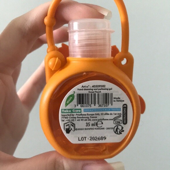 hand sanitizer is 35 ml, comes with adorable hand sanitizer holder so you can attach Hello Kitty to your purse wherever you go on all your adventures!