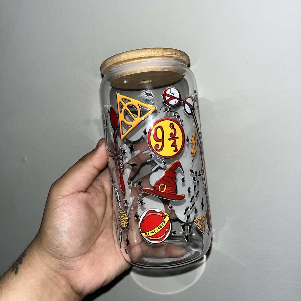 Hello Kitty X Harry Potter Libby Can Glass With Bamboo Lid Glass Straw 16oz. Condition is New. Shipped with USPS Ground Advantage.