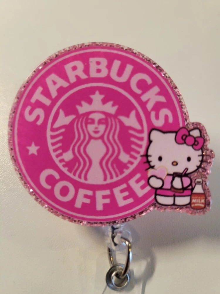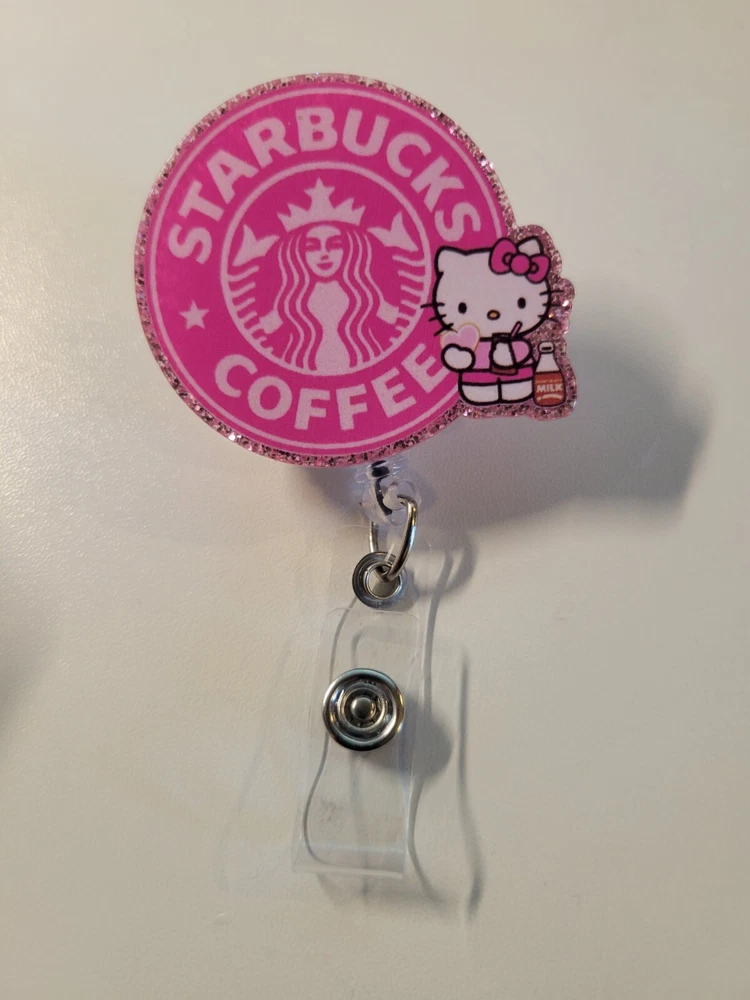 Hello Kitty Starbucks Coffee Retractable Badge Reel