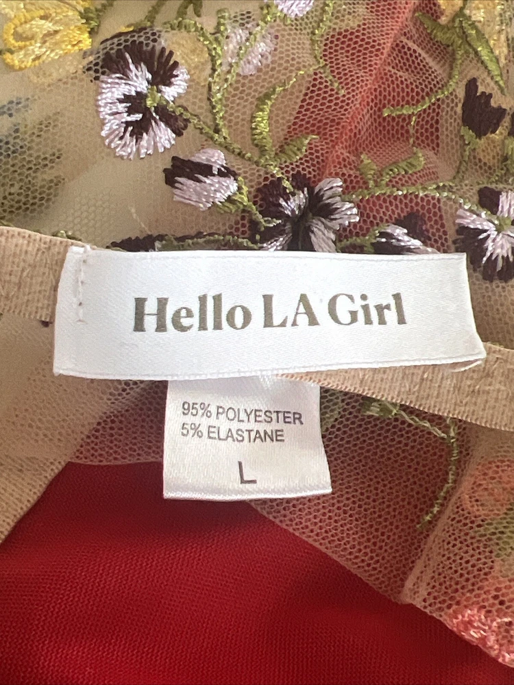 Elevate your underwear game with these stylish Hello LA Girl floral mesh panties in size L. Perfect for any occasion, these thong/string panties feature a comfortable waist compression area and stretchy polyester material for a flattering fit. The vibrant multicolor floral pattern adds a touch of fun to your lingerie collection. Machine washable for easy care, these panties are a must-have addition to any women's wardrobe. Whether you're running errands or dressing up for a night out, these panties will provide you with the support and style you need. Get yours today and hello LA Girl panties become a staple in your underwear drawer.