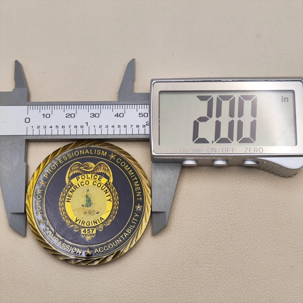 TITLE: Henrico County Virginia Police Department Challenge Coin #2 SIZE : Measures Approx 2 Used coins are inevitably flawed please see pictures PAYMENT : We support multiple payment methods and ship within 5 days of payment SHIPPING : We offer free shipping, and your purchase will be carefully packaged and sent to you with tracking information through eBay SERVICES : You can contact us at any time if you have any questions, We will get back to you as soon as possible to solve your problem If you are not satisfied with your purchase for any reason, Please contact us before leaving neutral or negative feedback and we will solve the problem properly for you