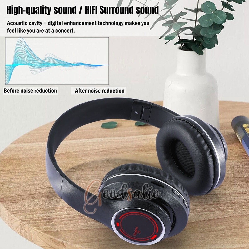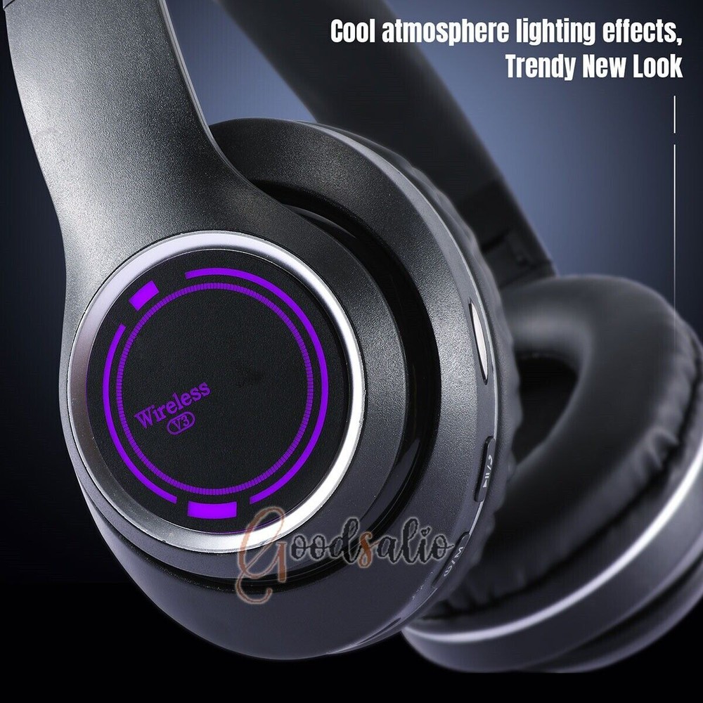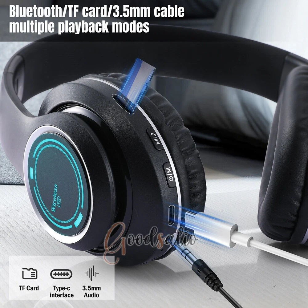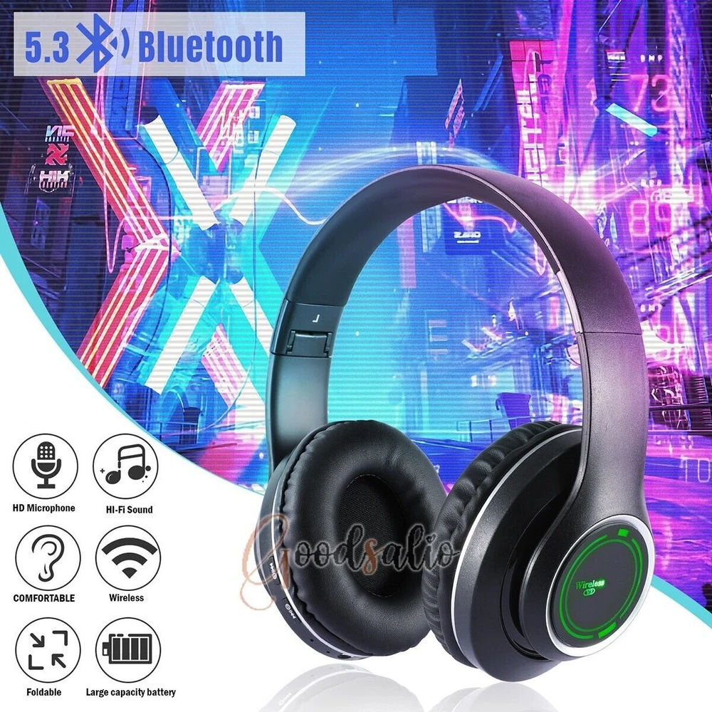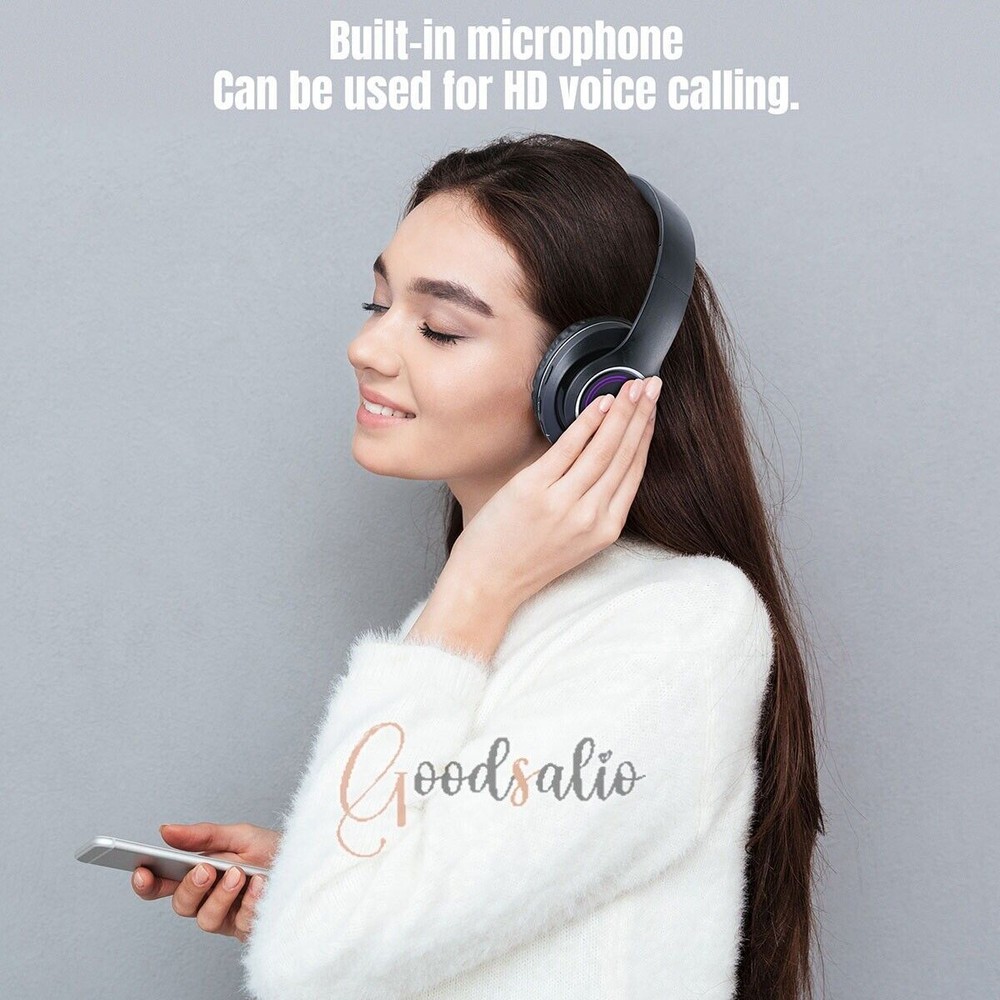 Headband Bluetooth HeadsetWireless Bluetooth Headset Over-Ear Headset Luminous ★SPECIAL TIPS: √ Ship within 24 hours Via USPS from NJ ,USA √ 100% New & Excellent Quality √ Professional Customer Service √ Strictly QC, Each set was fully tested before shipping √ Offer delivery with Tracking Number Product Features 1.Foldable Design: Headband Bluetooth Headset with foldable design, easier to put into a pocket, bag or other small storage space, can greatly reduce the occupied space. 2.Bluetooth 5.3 chip: The Over Ear Headset adopts Bluetooth 5.3 chip, faster and more stable connection, listening to songs and playing games more clearly. 3.Comfortable to The Ear: The Bluetooth Headset is made of soft protein leather, breathable and comfortable, even if you wear them for a long time, you won't feel booming head or discomfort. 4.High-Quality Sound Quality: Wireless Headset using acoustic cavity + digital enhancement technology, presenting surging three-dimensional sound, as in the concert scene. 5.Equipped with 3.5mm Audio Cable: When the Over Ear Wireless Headset is low on power or you want a more stable audio transmission, you can use the 3.5mm audio cable to connect the headset directly to audio devices (such as cell phones, computers, etc.) for wired transmission. Product Parameter Bluetooth Version: V5.3 Transmission Distance: 10 meters Battery Capacity: 400 mAh Charging Time: about 1.5 hours Standby Time: 80 hours Mode of Use: bluetooth/card/wire insertion Power Input: DC 5V Color: black Material: ABS Size: 18.5x18.5cm/7.28x7.28in Products Include 1x Earphone 1xUSB cable 1xAudio Cable