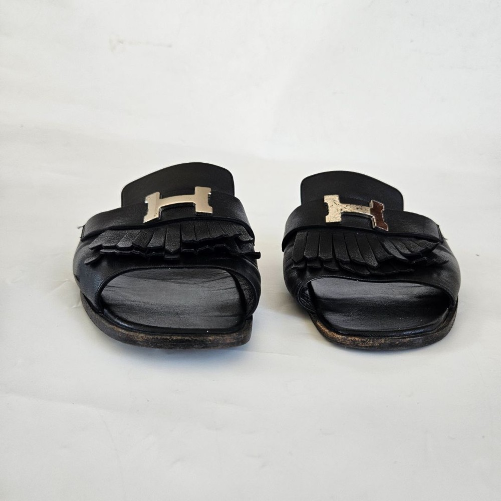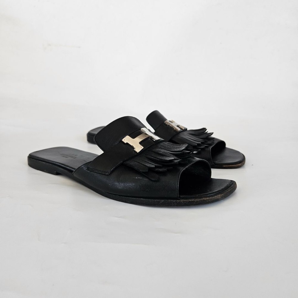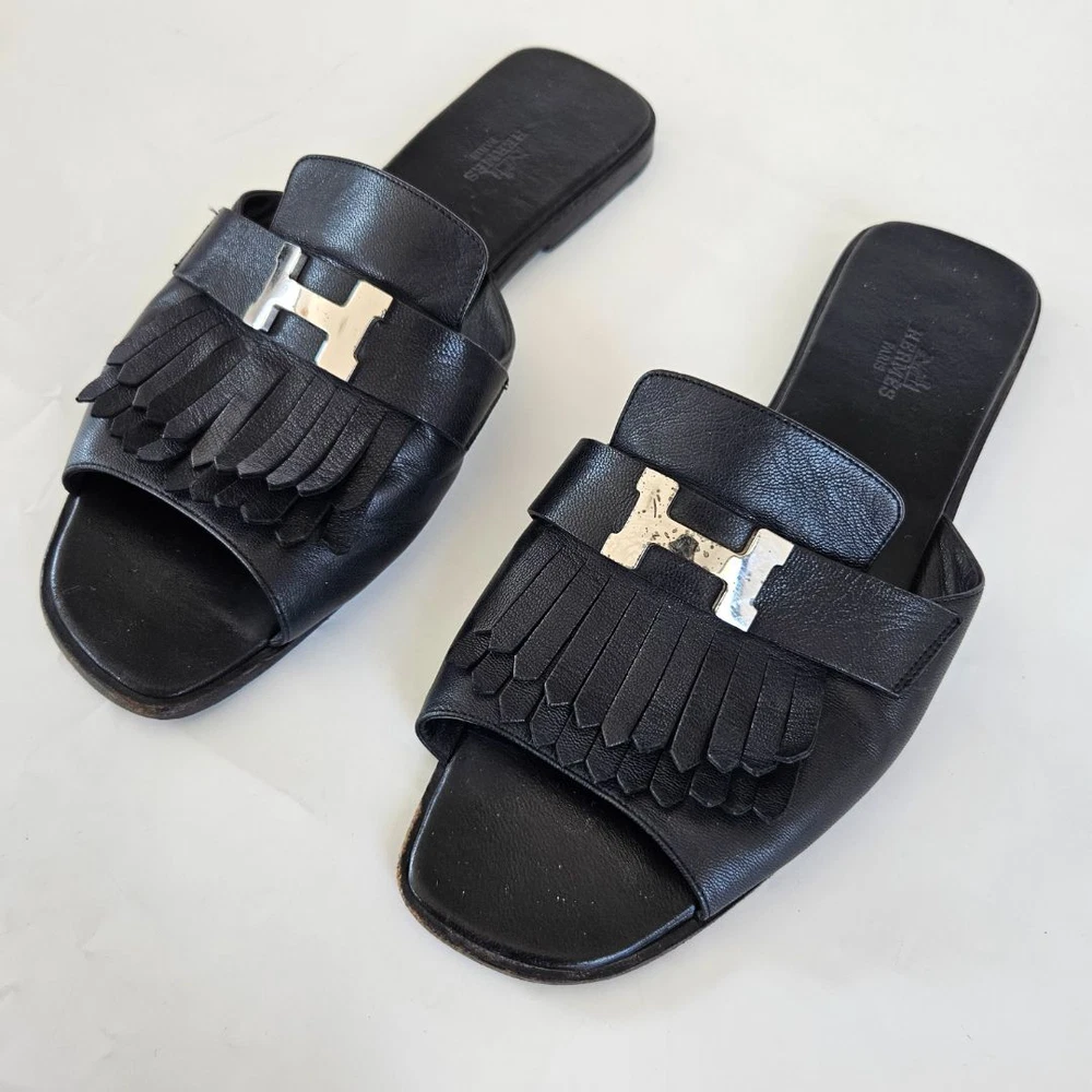 bopf Visit thebusinessofprelovedfashion store to see all the catalogue ABOUT US CUSTOMER FEEDBACK CONTACT US Hermès Auteiul sandal in goatskin with fringe detail check_circle Handling Time: 4 days check_circle Additional custom duties may apply check_circle 100% Authentic Hermes Auteiul sandal in goatskin with fringe detail and palladium plated signature "H" detail. Attributes Material : Leather Color : Black Size: 38.5 Condition Desc. : Gently used, tarnished hardware, scuffed on side Inclusions: bopf packaging About This Item Style: Sunglasses Department: women Upper Material: Leather Brand: Hermès US Shoe Size: 38.5 Color: Black How we list items 1. METICULOUS INHOUSE AUTHENTICATION PROCESS Our in-house luxury consignment experts offer a combined experience of over 8 years in the fashion resale industry enabling them to carefully inspect all items listed online to ensure they are authentic 2. VERIFY AUTHENTICITY USING ENTRUPY AI TOOL We use Entrupy: The world's first and only on-demand authentication solution for high-value goods as an additional layer of authenticity ventication. 3. THIRD PARTY PROFESSIONAL AUTHENTICATION SERVICES We use Entrupy: The world's first and only on-demand authentication solution for high-value goods as an additional layer of authenticity ventication. Customers with frequent return orders will incur a restocking fee of 30$ per order. This policy helps cover administrative costs es thoughtful purchases. About the Seller Shipping Policy Description Payment Policy Description Return Policy Description Welcome to The Business of Preloved Fashion (BOPF) – your trusted source for authentic, preloved luxury fashion. Founded in Dubai in 2021 by Hadiza Ibekwe, who brings over 10 years of experience in luxury resale, BOPF is committed to making luxury fashion more accessible and sustainable. Why Shop With Us? Authenticity Guaranteed: Every item is carefully inspected and authenticated by our experts. New Treasures Weekly: Our collection is updated weekly with carefully curated preloved designer pieces, including preloved bags, clothing, shoes , accessories and jewelry. Luxury for Less: Find high-end designer items at a fraction of their original prices. Quick Shipping: Enjoy fast, reliable shipping with every purchase. Sustainable Fashion: Join us in promoting a more sustainable fashion future by choosing preloved. Have questions? Reach out via eBay messaging – we're readily available! • We will use DHL courier for safe and fast delivery. • Import duties, taxes and charges are the buyer's responsibility. Please check with your country's customs office to determine what these additional costs will be prior to bidding or buying. • We accept only online payment method. • We accept payment by PayPal and Credit / Debit cards entered on eBay only. Customers with frequent return orders will incur a restocking fee of 30$ per order. This policy helps cover administrative costs and encourage thoughtful purchases.