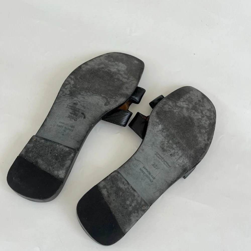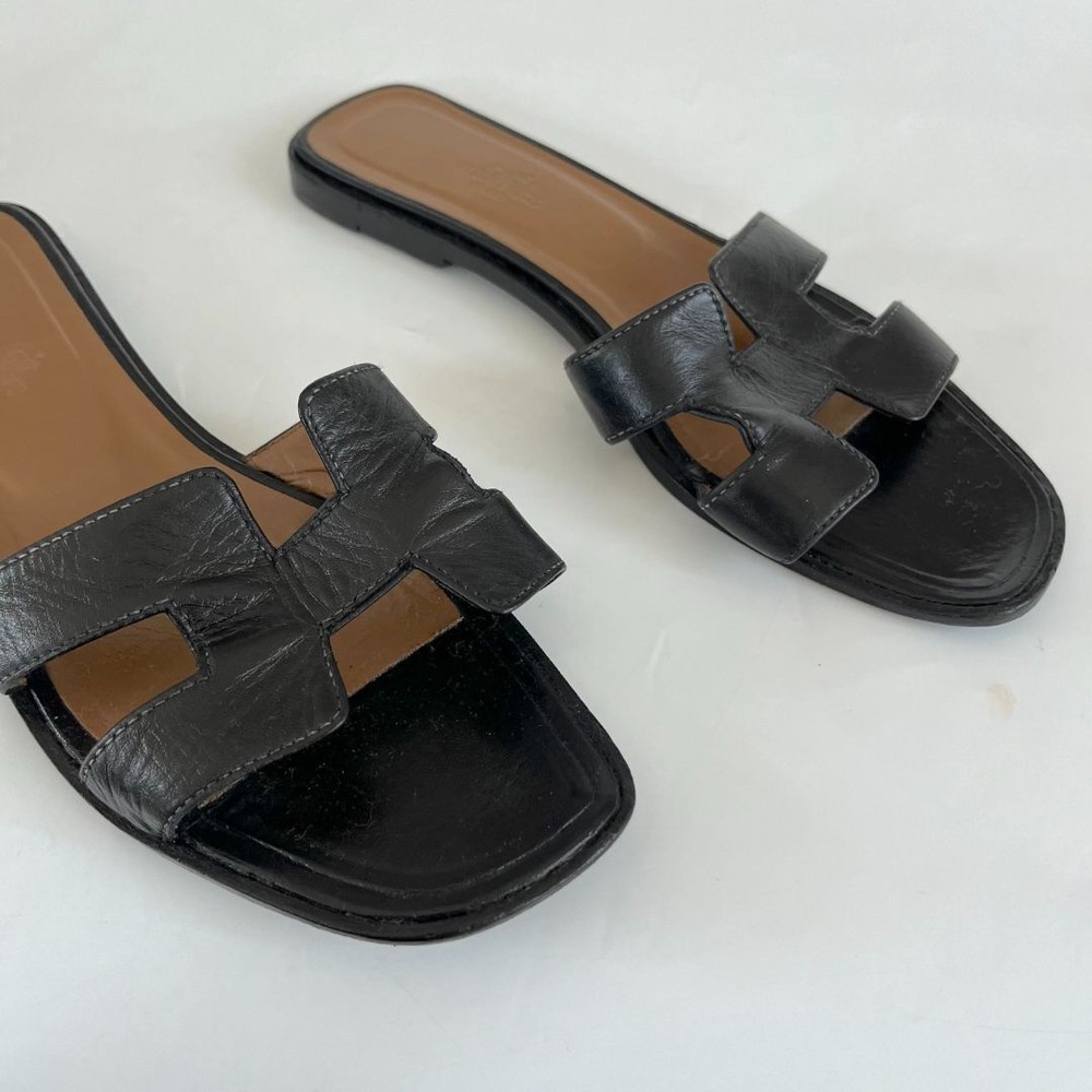 bopf Visit thebusinessofprelovedfashion store to see all the catalogue ABOUT US CUSTOMER FEEDBACK CONTACT US Hermès black leather classic oran sandals, size 38.5 check_circle Handling Time: 4 days check_circle Additional custom duties may apply check_circle 100% Authentic Hermes black leather classic oran sandals Attributes Material : Leather Color : Black Condition Desc. : Very good; creases on leather Size : 38.5 Inclusions: dust bag About This Item Style: Sunglasses Department: women Upper Material: Leather Brand: Hermès US Shoe Size: 38.5 Color: Black How we list items 1. METICULOUS INHOUSE AUTHENTICATION PROCESS Our in-house luxury consignment experts offer a combined experience of over 8 years in the fashion resale industry enabling them to carefully inspect all items listed online to ensure they are authentic 2. VERIFY AUTHENTICITY USING ENTRUPY AI TOOL We use Entrupy: The world's first and only on-demand authentication solution for high-value goods as an additional layer of authenticity ventication. 3. THIRD PARTY PROFESSIONAL AUTHENTICATION SERVICES We use Entrupy: The world's first and only on-demand authentication solution for high-value goods as an additional layer of authenticity ventication. Customers with frequent return orders will incur a restocking fee of 30$ per order. This policy helps cover administrative costs es thoughtful purchases. About the Seller Shipping Policy Description Payment Policy Description Return Policy Description Welcome to The Business of Preloved Fashion (BOPF) – your trusted source for authentic, preloved luxury fashion. Founded in Dubai in 2021 by Hadiza Ibekwe, who brings over 10 years of experience in luxury resale, BOPF is committed to making luxury fashion more accessible and sustainable. Why Shop With Us? Authenticity Guaranteed: Every item is carefully inspected and authenticated by our experts. New Treasures Weekly: Our collection is updated weekly with carefully curated preloved designer pieces, including preloved bags, clothing, shoes , accessories and jewelry. Luxury for Less: Find high-end designer items at a fraction of their original prices. Quick Shipping: Enjoy fast, reliable shipping with every purchase. Sustainable Fashion: Join us in promoting a more sustainable fashion future by choosing preloved. Have questions? Reach out via eBay messaging – we're readily available! • We will use DHL courier for safe and fast delivery. • Import duties, taxes and charges are the buyer's responsibility. Please check with your country's customs office to determine what these additional costs will be prior to bidding or buying. • We accept only online payment method. • We accept payment by PayPal and Credit / Debit cards entered on eBay only. Customers with frequent return orders will incur a restocking fee of 30$ per order. This policy helps cover administrative costs and encourage thoughtful purchases.