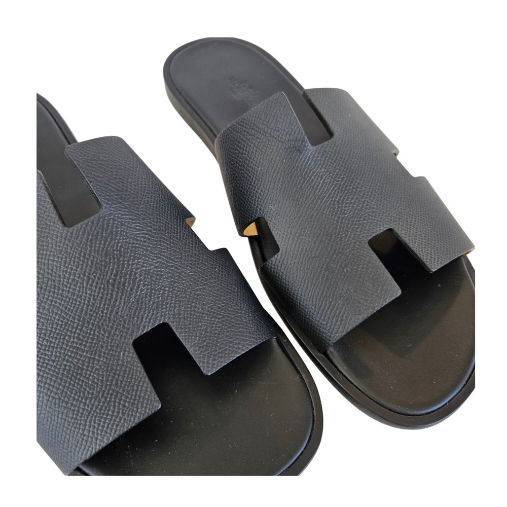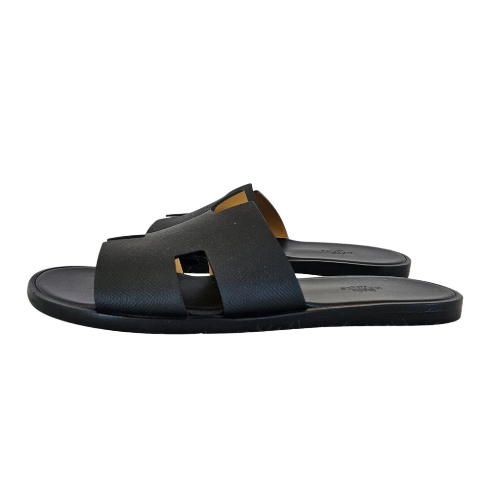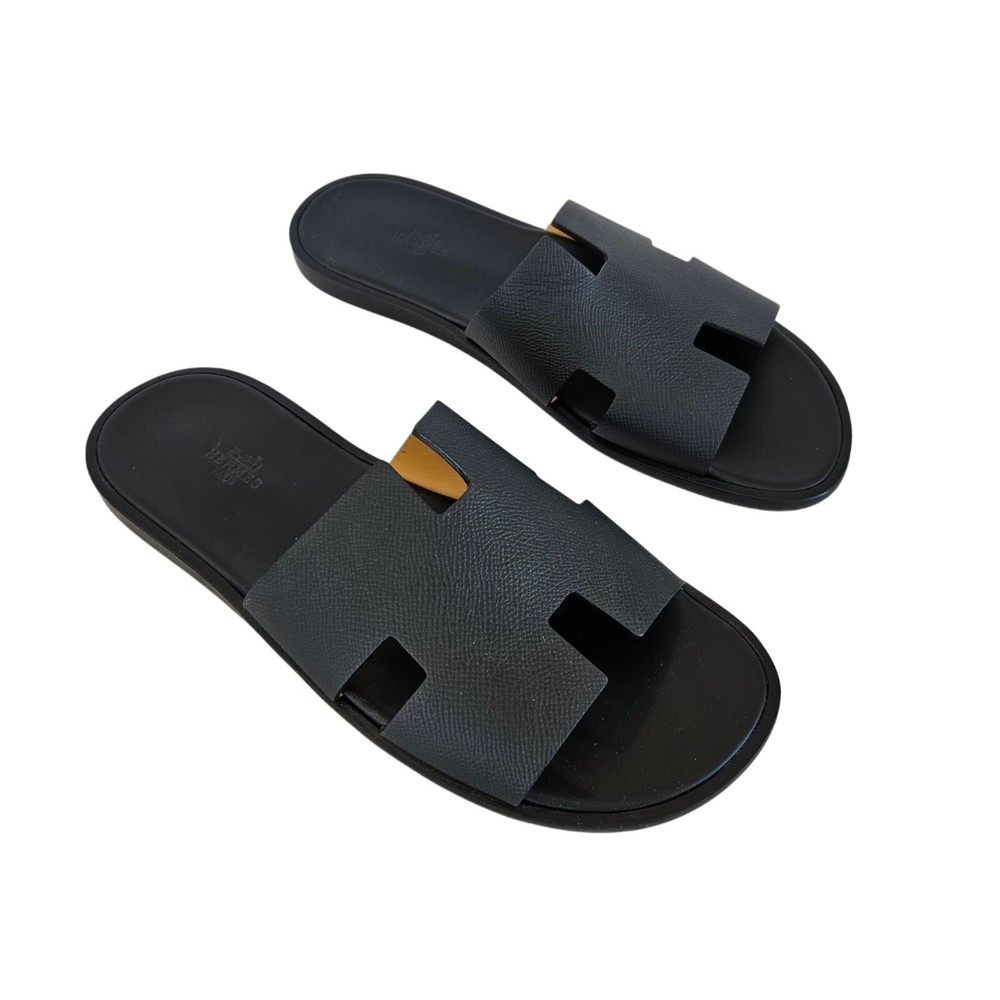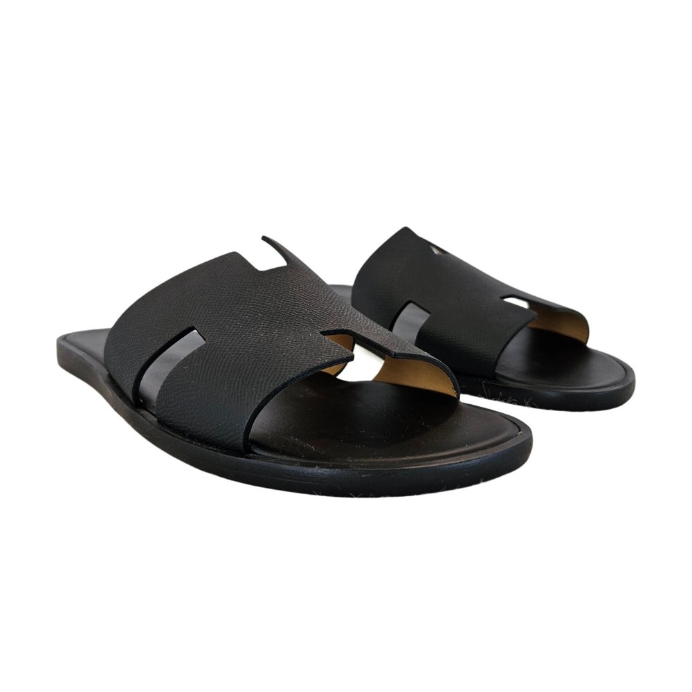 Hermes Black Leather Izmir Flat Sandal, 43 Attributes Material : Leather Color : Black Condition Desc. : Like New Size : 43