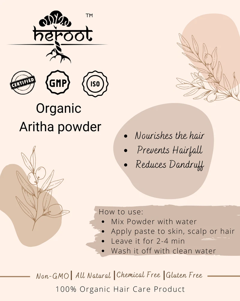 Heroot Organic Aritha/Reetha Powder Aritha Powder helps preserve hair health by gently washing the hair and scalp. It contains reetha extract, which has insecticidal properties and is effective in treating dandruff and lice on the scalp. It also helps to reduce hair loss, increase hair renewal, and strengthen hair follicles. Key Ingredients: Organic aritha/reetha Key Benefits: · It is beneficial for gently cleansing the hair and scalp and aids in maintaining hair health · It has reetha extract, which is excellent in reducing dandruff and removing lice from the scalp due to its insecticidal characteristics · It also aids in reducing hair fall, promotes hair regrowth and help provide strength to the hair follicles · Reetha powder can be mixed with warm water to form a paste which can be used to massage the scalp to help manage dandruff · This powder may help to remove lice from the scalp due to its insecticidal property Directions For Use: To use Aritha powder as hair pack, mix it with equal amount of clean water and prepare paste. Applying the paste on the hair. After applying it, massage the scalp for 5-7 minutes. Wash it after 10-20 minutes. Do this every alternate day and see the result within a week. Safety Information: Store in a cool dry place Keep out of reach of children · If you are pregnant or lactating or prone to any food allergy or under any medical condition consult your healthcare practitioner before use Disclaimer The above description is for information and knowledge purpose, not a healthcare professional advice. Please consult your doctor and/or pharmacist before you take this vitamin. Pregnant or lactating women, diabetics, hypoglycemics, and people with known medical conditions and/or taking drugs, should consult with a licensed physician and/or pharmacist prior to starting any supplementation program. The above statements have not been evaluated by the Food & Drug Administration. Shipping and Handling 1. Shipping time will be 1 business day after the cleared payment 2. We will ship by Indian Post service 3. Shipment will take 15-30 days. Few more days for your local customs delay and formalities. 4. For Express service additional charges will be applied. For any reason you wish to leave Negative or neutral feedback, Please contact us first and let us mutually resolve it. We care for your satisfaction and will make sure that you are happy with the transaction to post us 5**** ratings in all areas. ***Customs Information*** Heroot will not be liable for packages refused or held by customs for delivery. We request that you contact customs office and ask about import regulations and restrictions before placing your order. It is importsnt for you to become familiar with customs policies for your specific country before ordering. Customs regulations differ by country and not knowing their regulations can result in your order incurring high import duties, the delivery being delayed or even returned. Please check with your customs office to see if your country permits the shipment of the products you are planning to order from us and if any additional licenses or permits are needed. Please note: if your order is returned to us due to banned/ restricted products policy, a wrong address, refusal to pay customs fees, refusal to accept the order or because no one was there to accept the delivery of your order, we will refund your order as follow: you will be refunded the total amount of the order, minus the original shipping charge