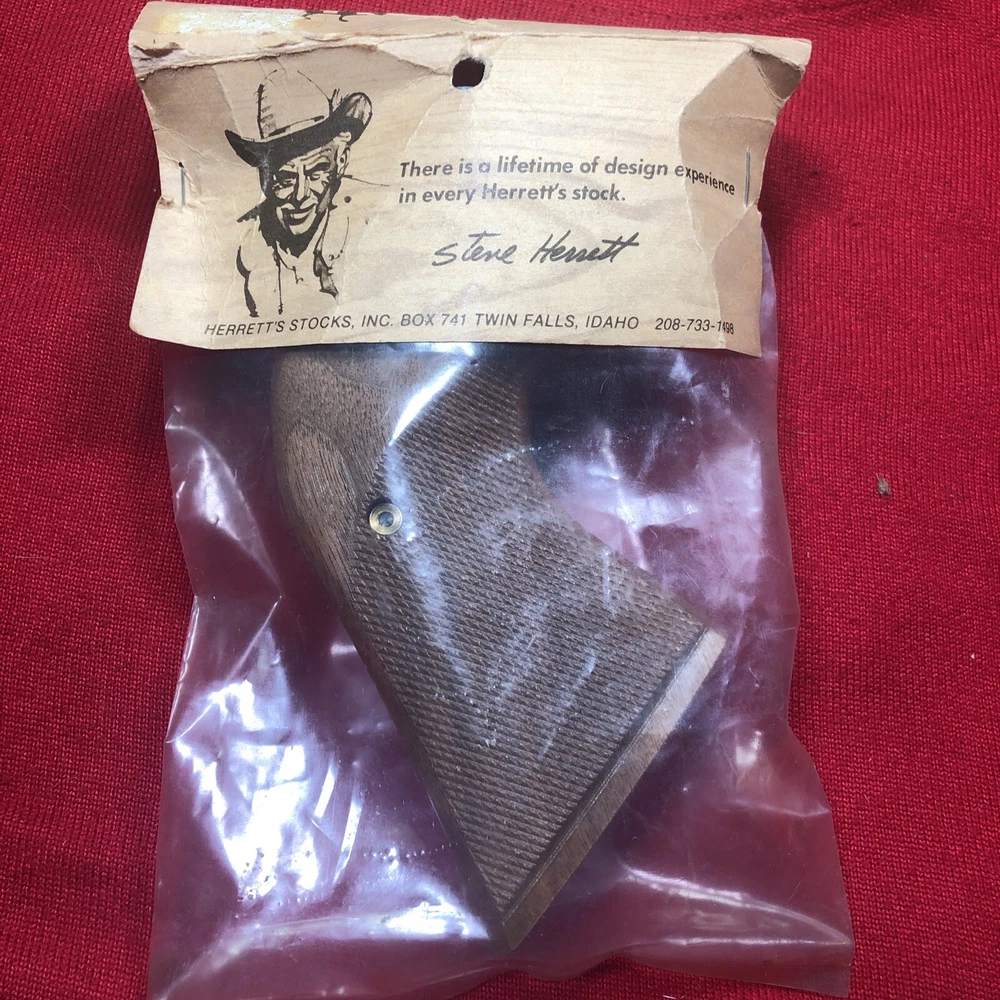 The product is a pair of Herrett Genuine Walnut stocks designed for a Ruger Super Blackhawk handgun in .44 Magnum caliber. The stocks are in a brown color and come in their original packaging. Made in the United States, these handgun stocks are crafted by Herrett, a reputable brand known for producing high-quality gun accessories. Perfect for enhancing the grip and aesthetics of the Ruger Super Blackhawk, these walnut stocks are a stylish and functional upgrade for any handgun enthusiast.
