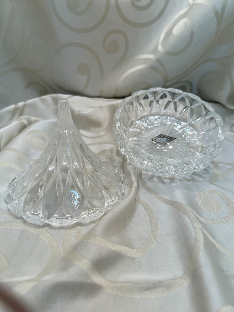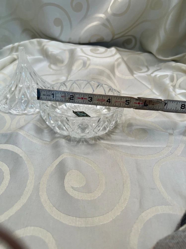 $ 7.26VTG 24% Lead Crystal Candy Dish with Finial Lid Cut Glass Footed Heavy 9 Inch Tall